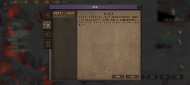 第一个存档,应该是第一周目,刚解锁火魔地图他们想停战,停的话影响主线吗