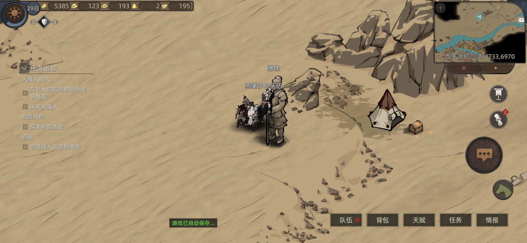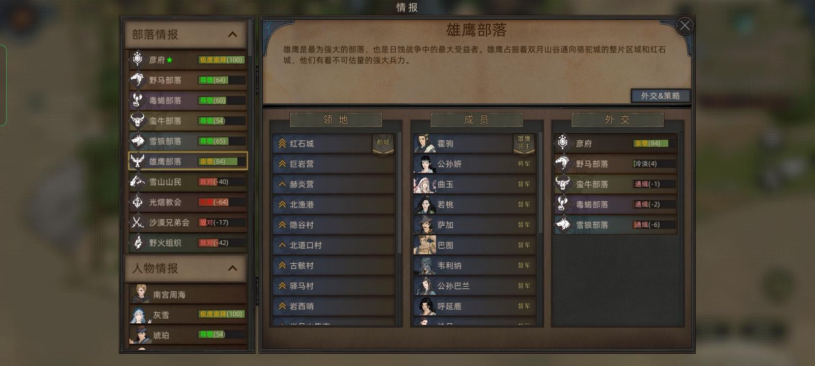 新手玩的第一个档选了剑豪,坚持五百多天,终于把五大部落都打完了,剩下的都是小趴菜,太有成就感了!😄刚开始也是被追杀的很惨,还交不起保护费😶。从凑齐满编队友后开始一直打城,越打越上头!感觉对游戏的内容和玩法基本掌握了,后面再试试新的角色和打法!(如果可以直接安排属下将领去打想打的城就好了!还有怎么才能把自己练好的部队分给属下将领带着?)