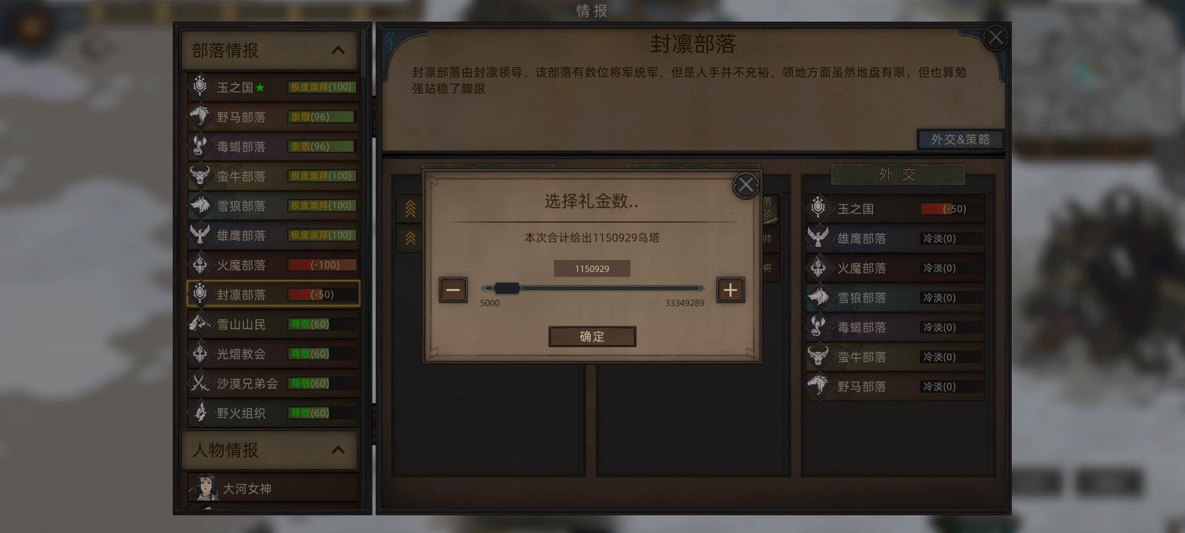 104天必定出反骨仔,但我万万没想到是他们反在一起了。先前把五个首领搞在一起建国,然后一大批粉丝就投了过来,打他们的部落会降低关系,然后就这样了,对于他们的反骨我决定送他们一笔创业资金