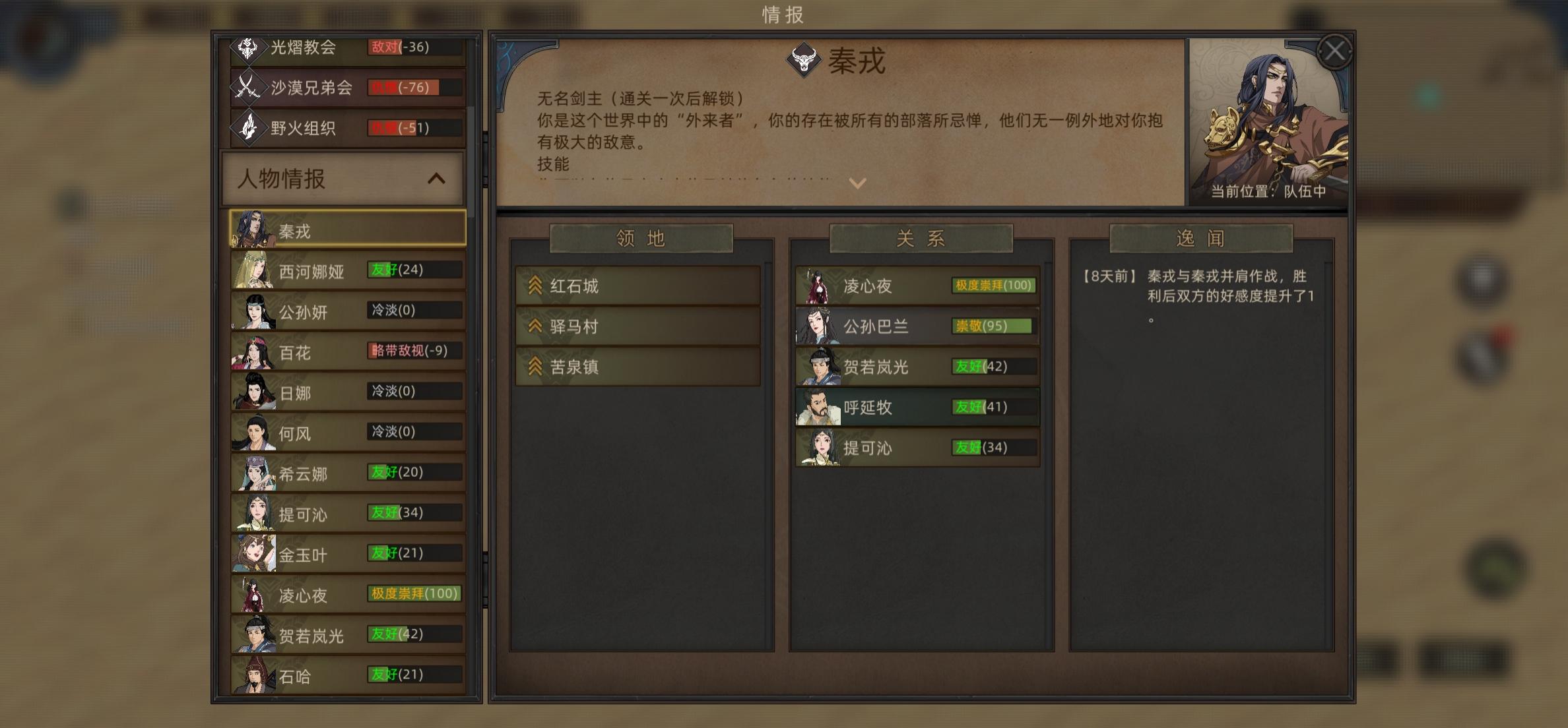 这两个雄鹰部落的25仔。要是可以做掉npc,爷立刻马上去把这两个25仔做掉尤其是这个巴图,一身肌肉的小心眼。托亚是的老二五仔了。做啥都掉好感,还拉拢那几个对我深仇大恨的人把我给他的城池成立势力越看我越是动了杀心