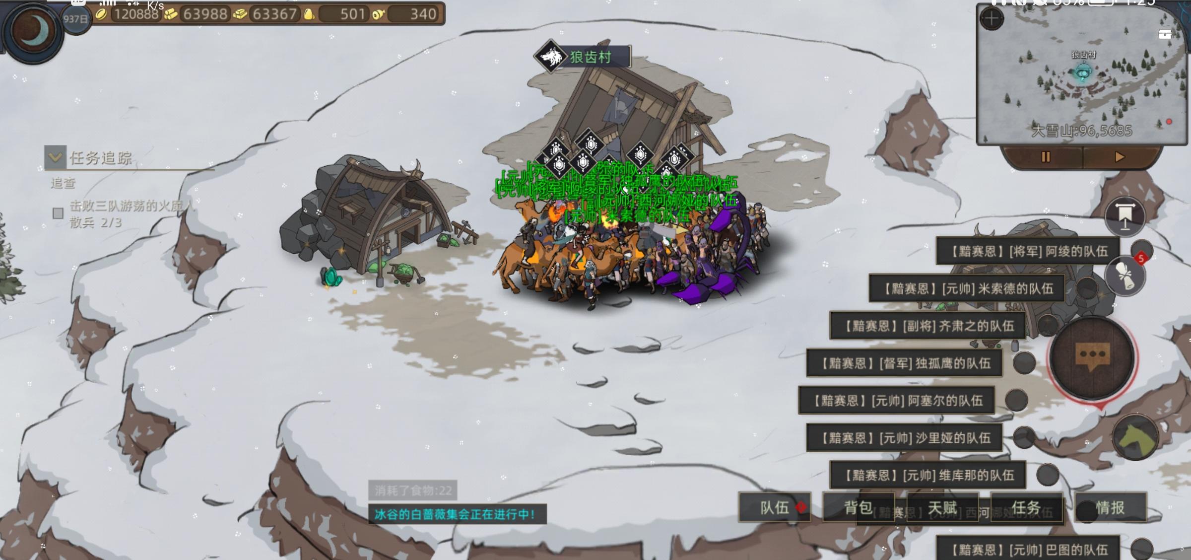 为了打冰谷秘境,只好灭掉了世代交好的雪狼部落,灭了最后两座城。本来想留着这个部落,不会太孤单,其它部落都已经被灭了。现在势力里面英雄就有三十多个。