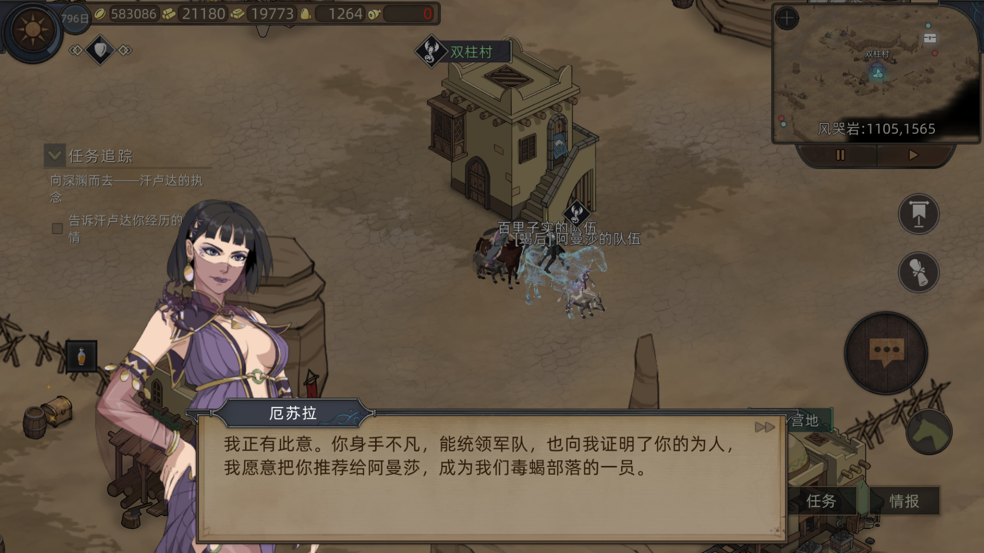 原本都想要放弃了,可是签字的主线任务也得做,我又是个和平主义者不能动不动就灭部落啊(还是为了t6),结果上一篇里发现有办法可以把对方堵在城里强行做任务,于是愉快的日常又开始了。