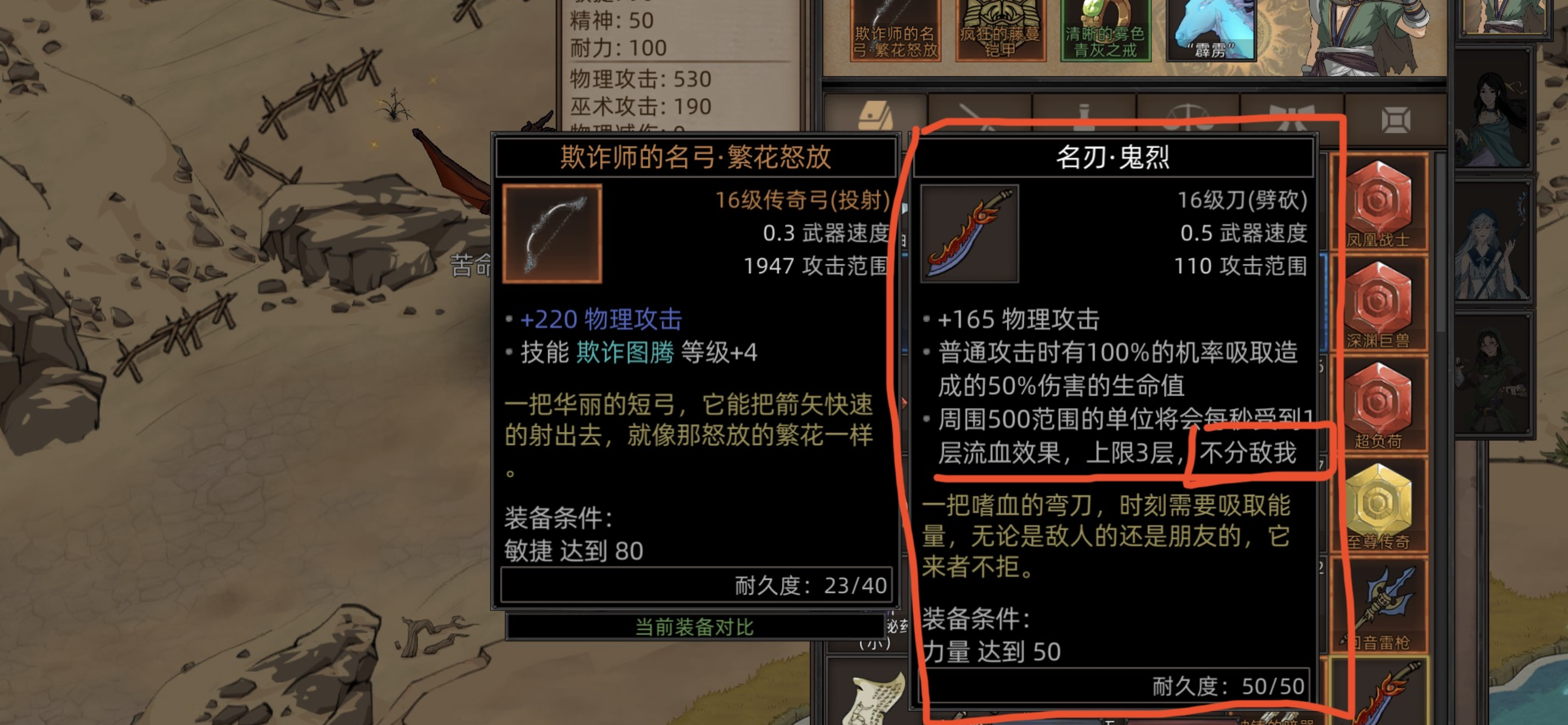 名刃•鬼烈 这把刀怎么搭配好,100%吸血,但是后面的词条不友好,敌我不分,拿这把刀能短期单挑一群,长时间耗就把自己耗死了。
