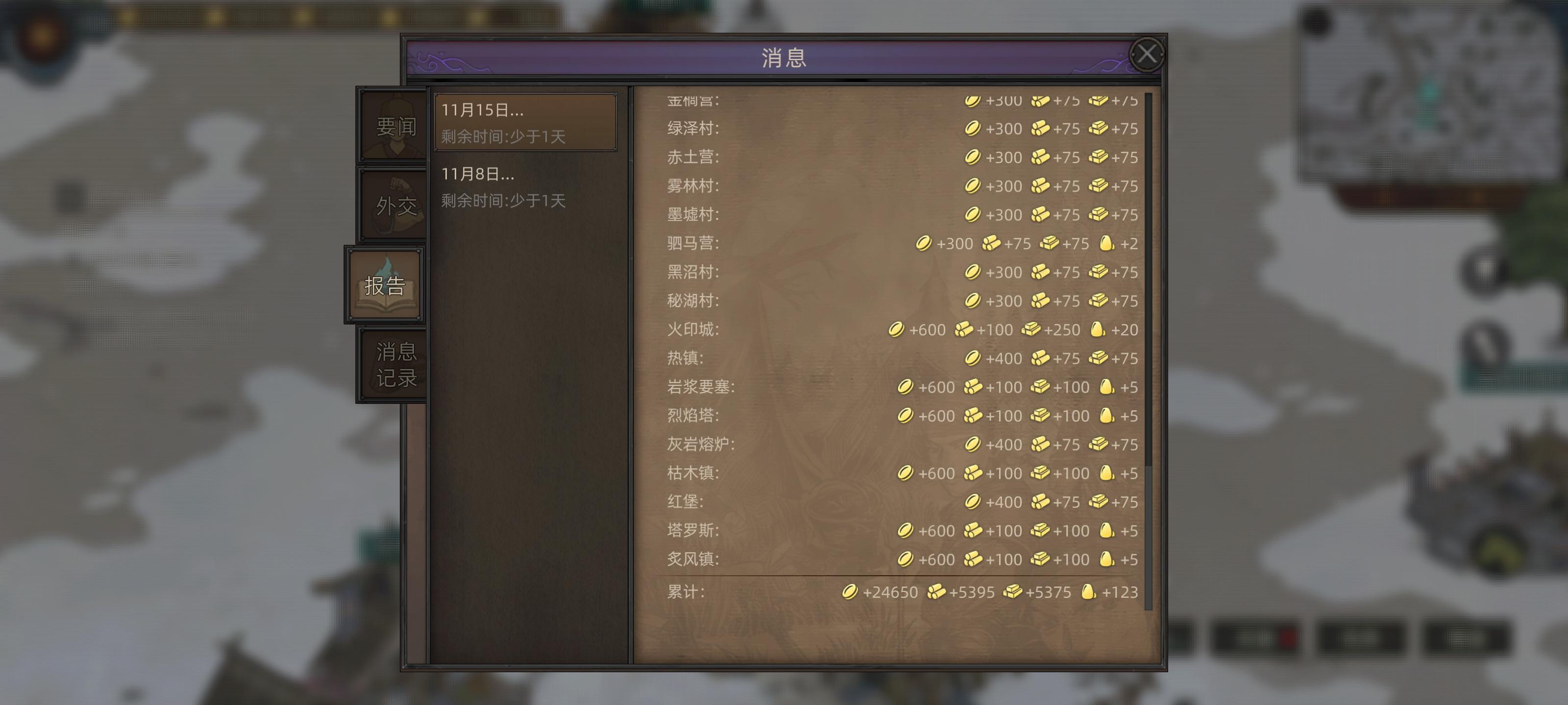 一统江湖后刷任务挺不错的,全部城市加起来才这么点资源😆