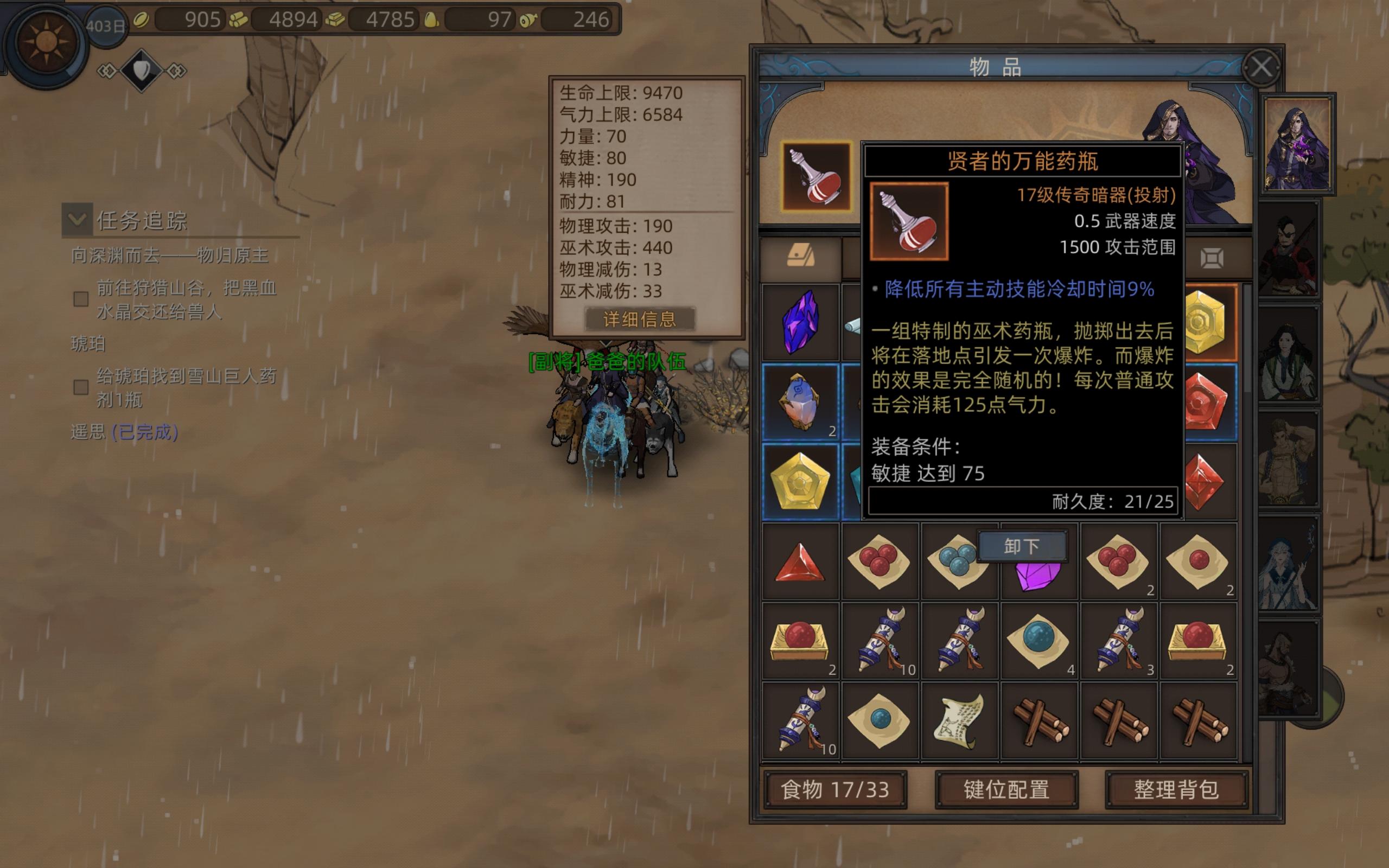 看到没人发这个,我先发为敬了,不开挂,纯手打的。这贤者的万能药瓶真的堪称挂一般的存在。地址:沙漠右上角一个坑坑洼洼的营地