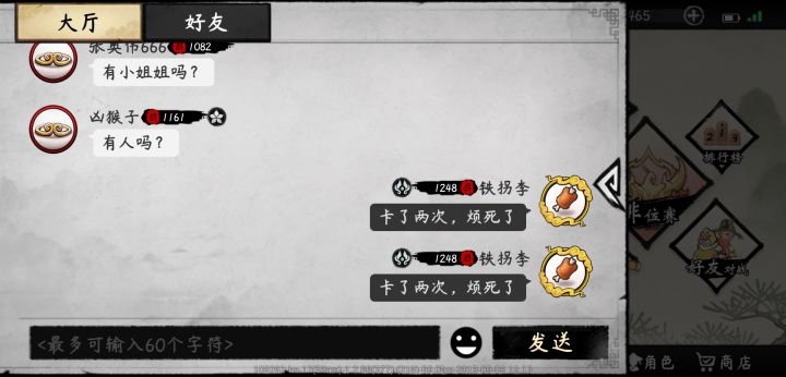第一个就是和好友聊天的时候,底部文字被屏幕遮挡。第二个是卡顿,打架的时候啦了两次,大厅发言也卡顿,挺可怕的。(小声bb一下,唐僧白骨精困难我打不过去,能不能调低一下难度)