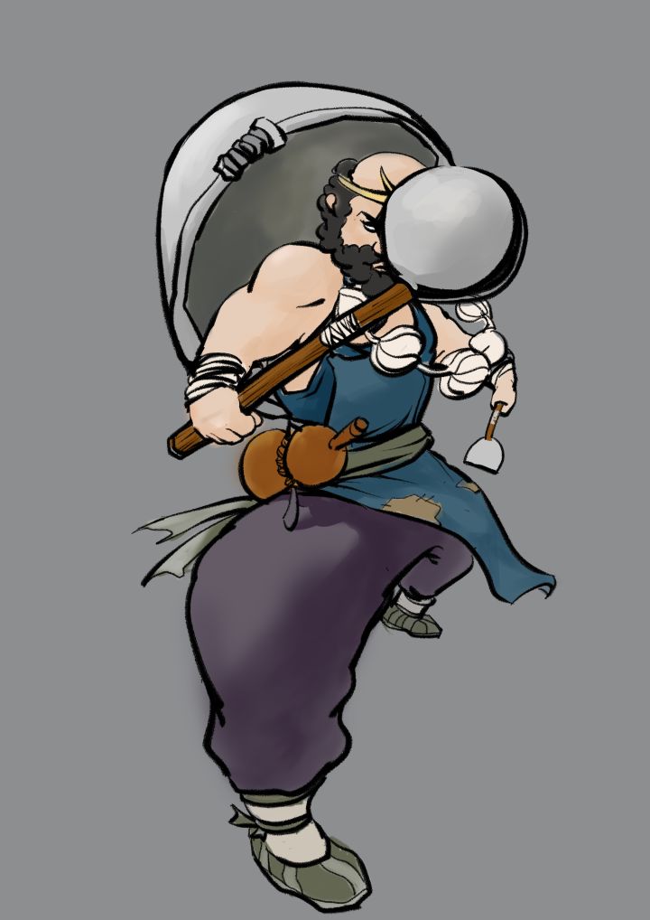 我画完了,想把沙僧画的更硬些,但是不知道怎么画。沙僧这个角色技能充满了诙谐感,以及不弱的伤害和反击能力,我挺喜欢这种有些反差和快乐感的角色的,他的锅真好玩😆