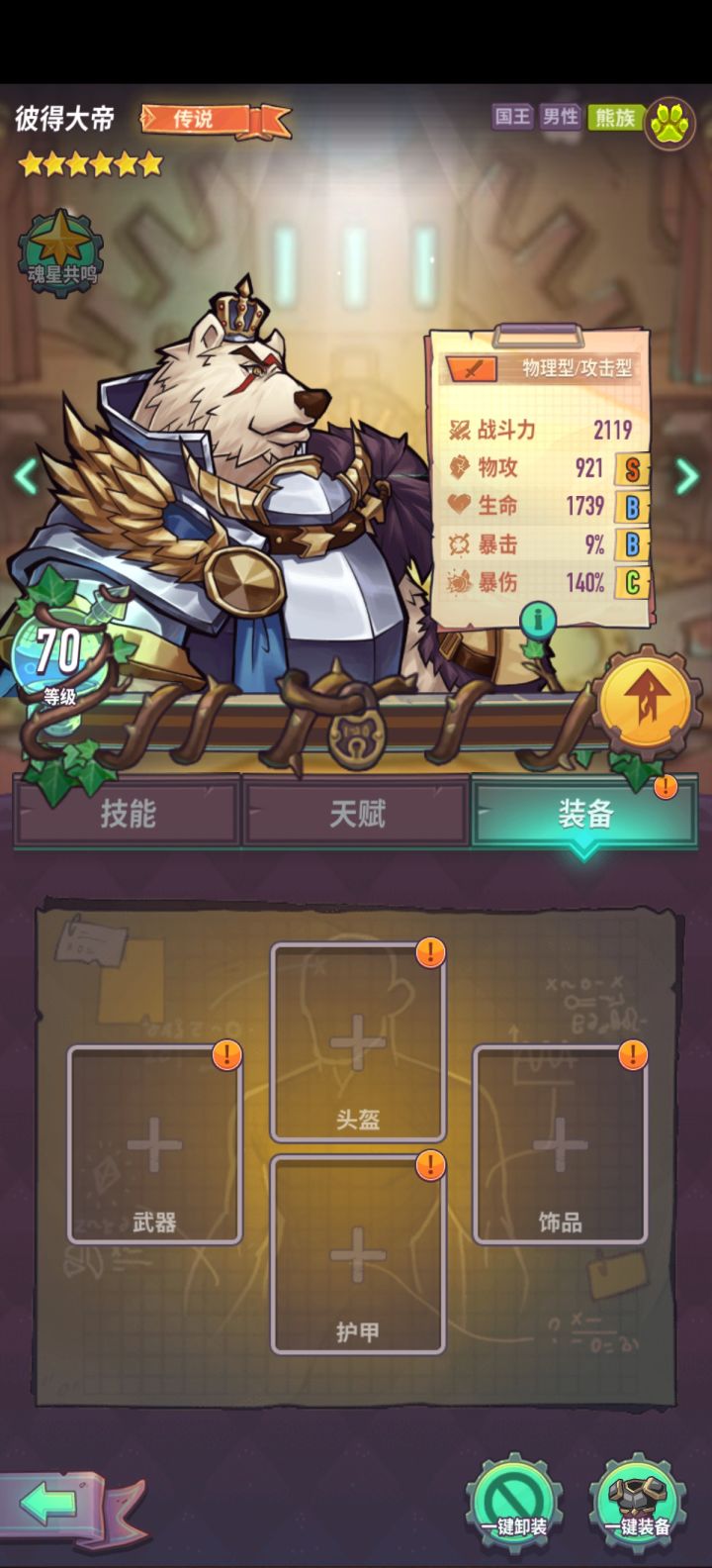 最近有人开玩笑说彼得大帝一巴掌200w,又没有解释清楚导致现在还是有人误以为是真的,我做一个计算帮大家看看,以我的70级彼得大帝为例921的攻击力,140的暴伤,由于彼得大帝自身B类增伤很高,装备选择帝国制裁,指挥官套,帝国勋章,并且为了极致伤害,不管暴击率,词条全部选择满的5攻击力或者12暴伤,仅考虑自身属性加上装备属性,基础攻击力为921+260(帝国制裁)为1181,暴伤为140+50(制