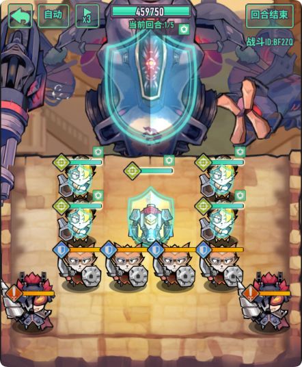 思路是清掉前排两个冲锋怪避免第一回合被锤死,利用汉尼拔士兵做垫子给加哈吃满大招伤害,中间史莱姆可以留着不让BOSS召唤盾守,先击杀BOSS再杀史莱姆即可。