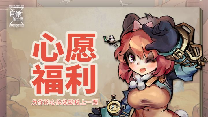 早上好,中午好,晚上好镇长大人!我们来为大家准备福利啦!我宣布《巨像骑士团》心愿池福利投票活动限时开启!你投票的奖励项说不定将成为全服福利赠送给大家!投票时间即日起至6月8日活动内容活动投票期间,请为你心仪的一项奖励投票吧!我们将在活动结束后,将本期心愿池获票数最高的一项,作为全服奖励发放给大家!发放时间本期心愿池奖励将在活动结束后的7个工作日内通过邮件进行全服发放。截止发放时,已注册