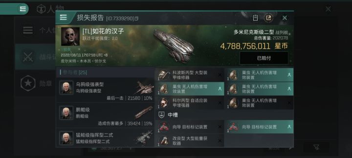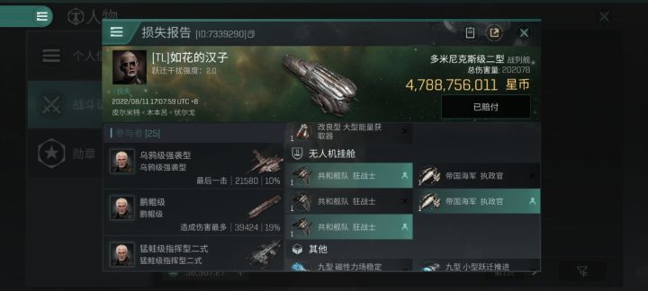 我高安刷机遇,一次也就300万收入一下丢失15E装备,17点07分爆的船,17点17分去捡就少了3个虫巢无人机增效,和三个大势力无人机。这事客服不管的话,必须退游。