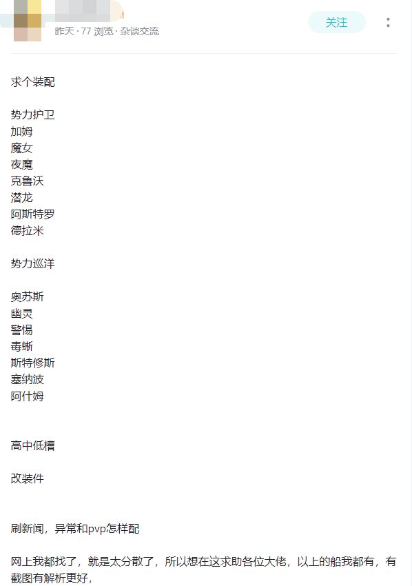 这几天在逛论坛的时候遇到了一个求舰船装配的玩家,各个势力的舰船装配都想要一份。我本来是打算每一艘都写一份给他,但后来仔细想了一下,这些装配我曾经写攻略的时候基本也写过,和他交流了一下才得知,他也看过我的攻略,但他似乎没有get到如何配船。说到底,EVE的配船是一门很有趣的学问,我给出的装配也只是最适合我要做的事情的装配,在EVE中也没有绝对无敌的装配(不然怎么天天有那么多KM出现,难道每一个K