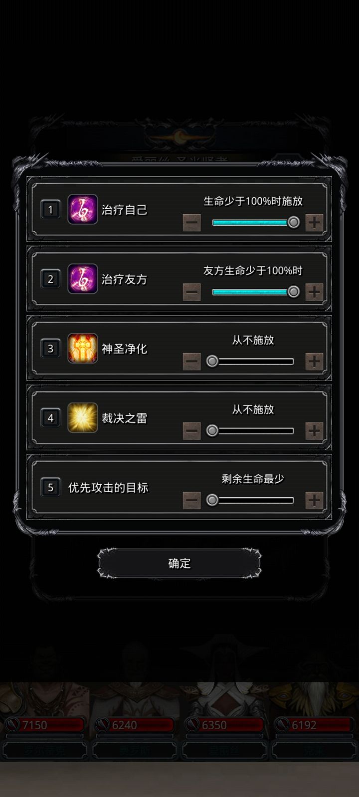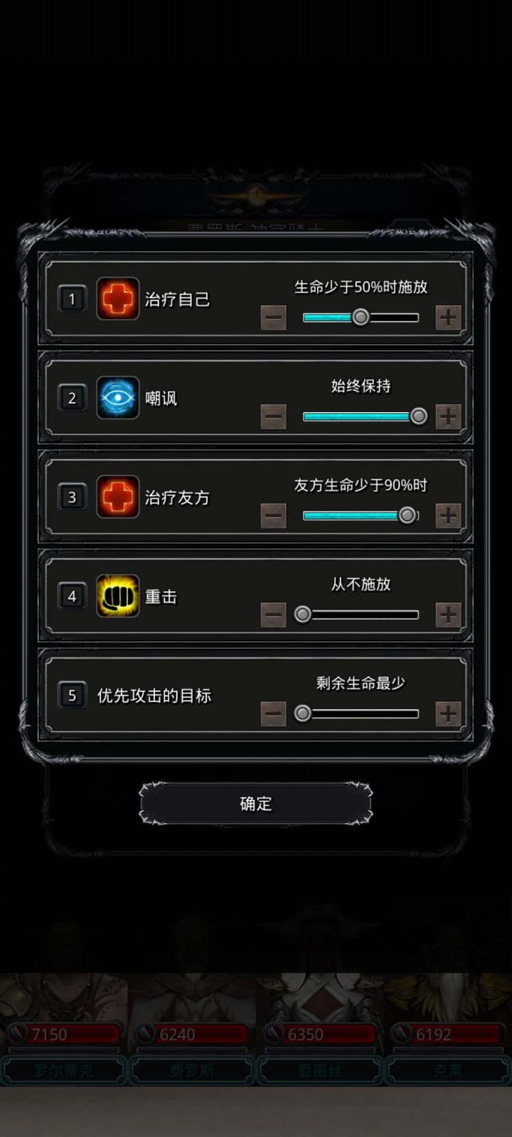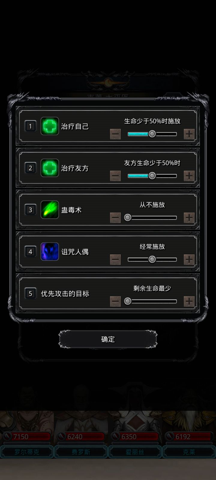 高配(开局神官祭祀不被秒),神官开局直接嘲讽,然后谁血少奶谁,蛮子无视魔石,命中战利品和环(换成剑豪应该也行)低配,神官开局奶祭祀,然后嘲讽,奶祭祀奶自己循环,注意补嘲讽(刷脸)
