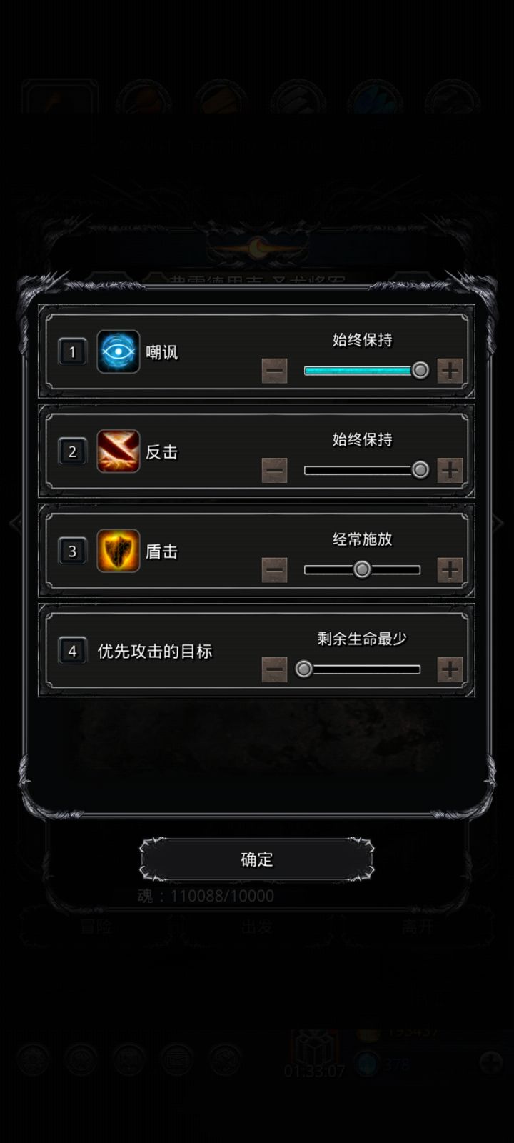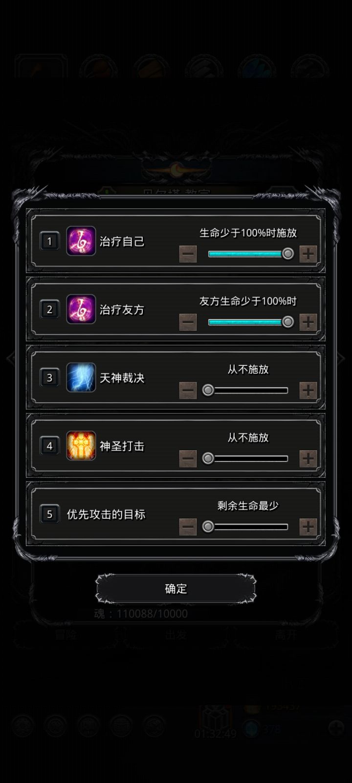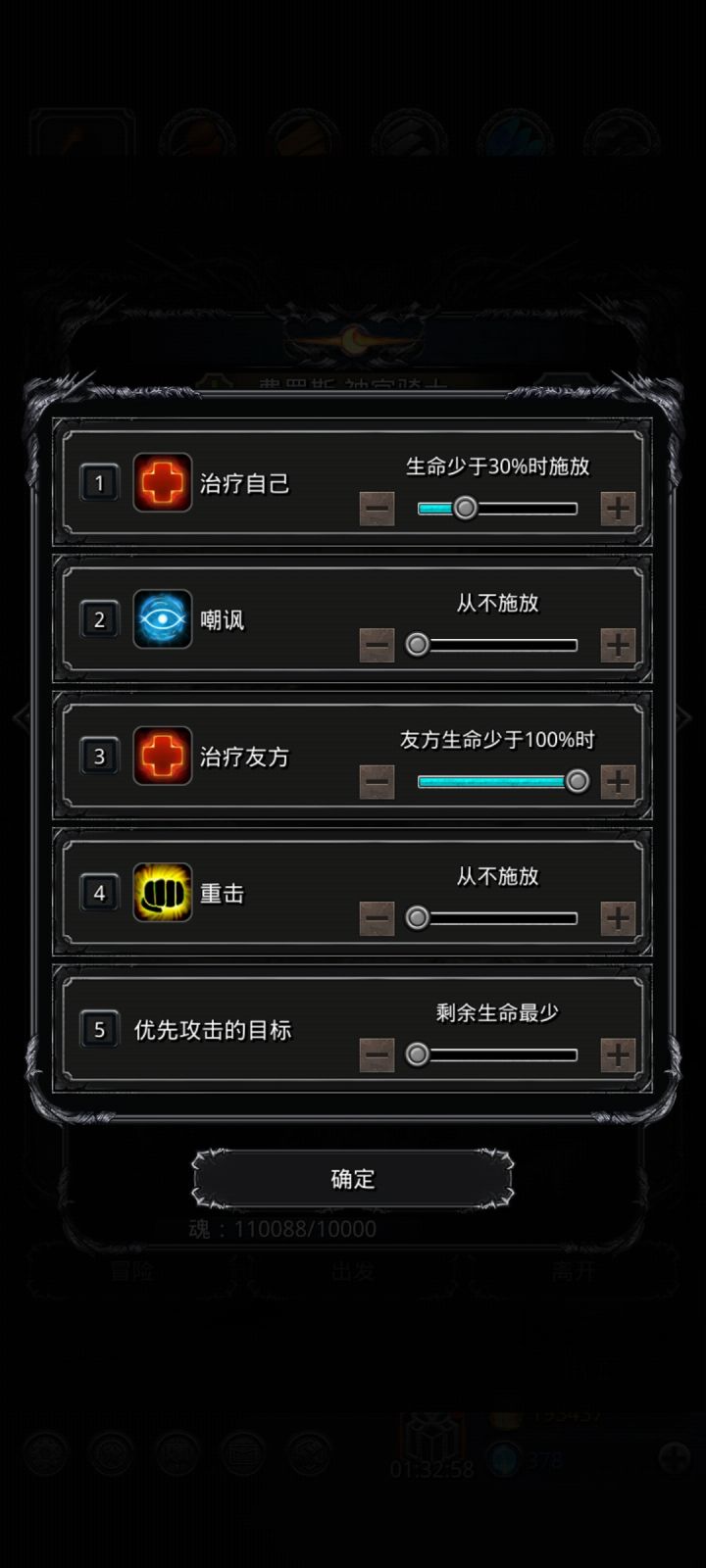 高配(开局神官祭祀不被秒),神官开局直接嘲讽,然后谁血少奶谁,蛮子无视魔石,命中战利品和环(换成剑豪应该也行)低配,神官开局奶祭祀,然后嘲讽,奶祭祀奶自己循环,注意补嘲讽(刷脸)