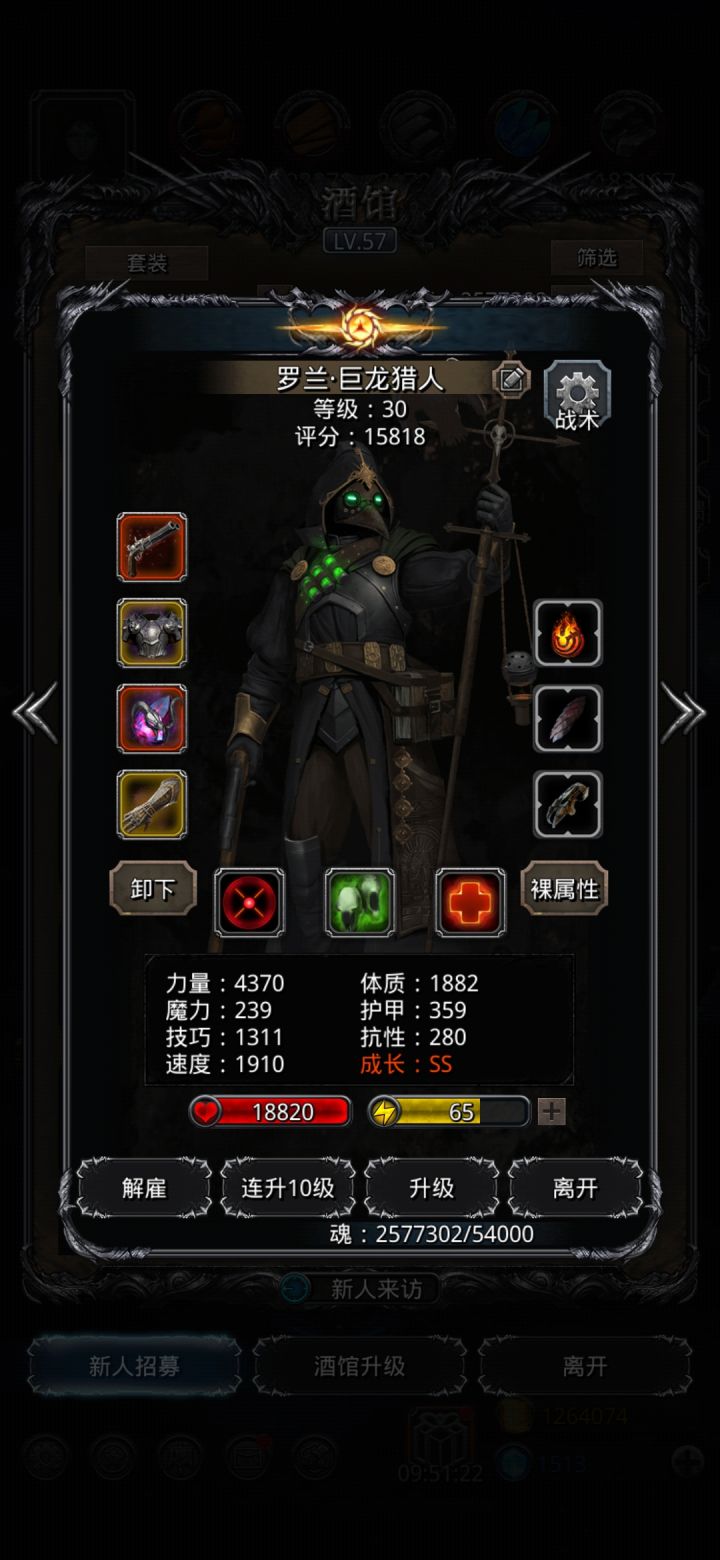 这个boss的伤害一般,关键是dot恶心。三输出一奶速战速决。具体阵容先上图巫医瞬回3000+秒回3000,魂贤技巧越高越好,火法战利品都是单体吸血。魔石特效都是命中(传猎是狂暴)。巫医50/80奶,火法开单体,传猎1技能,魂贤开摄魂术。打了多久不知道(挂机吃了个饭回来就赢了)。下面有具体数据。