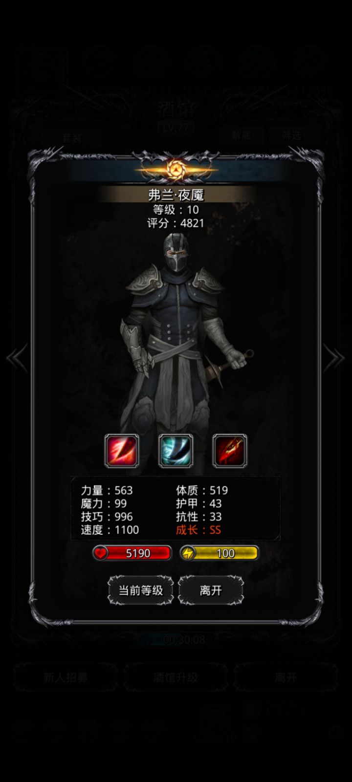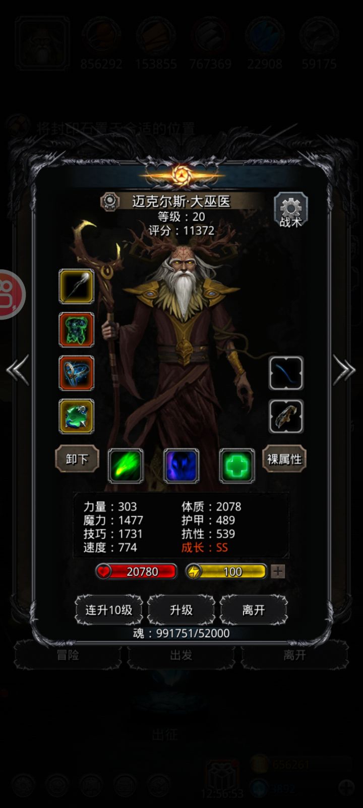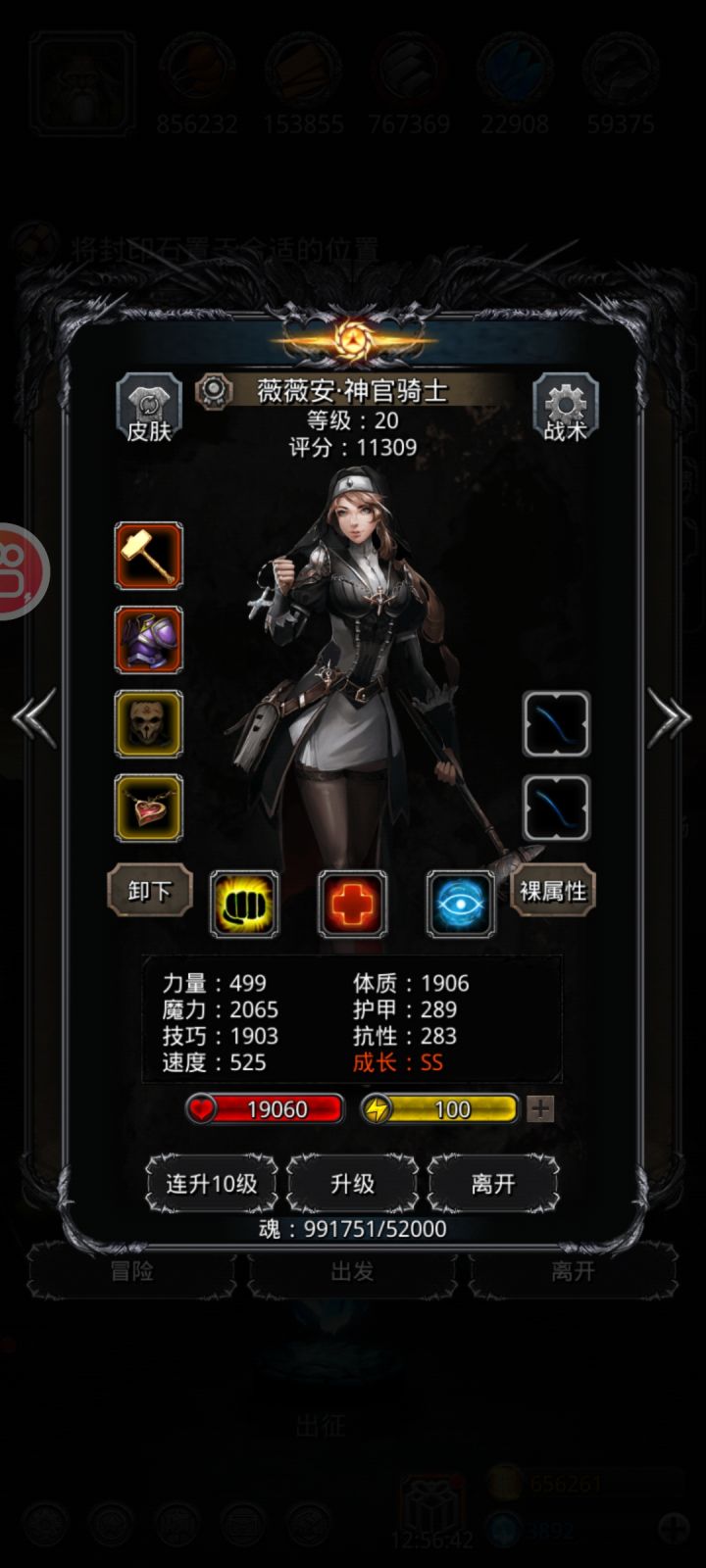 这夜魔日10加得太给力了加了33点速度。然后升级了个极品输出圣光,妈妈在也不怕我打不过魔藤了