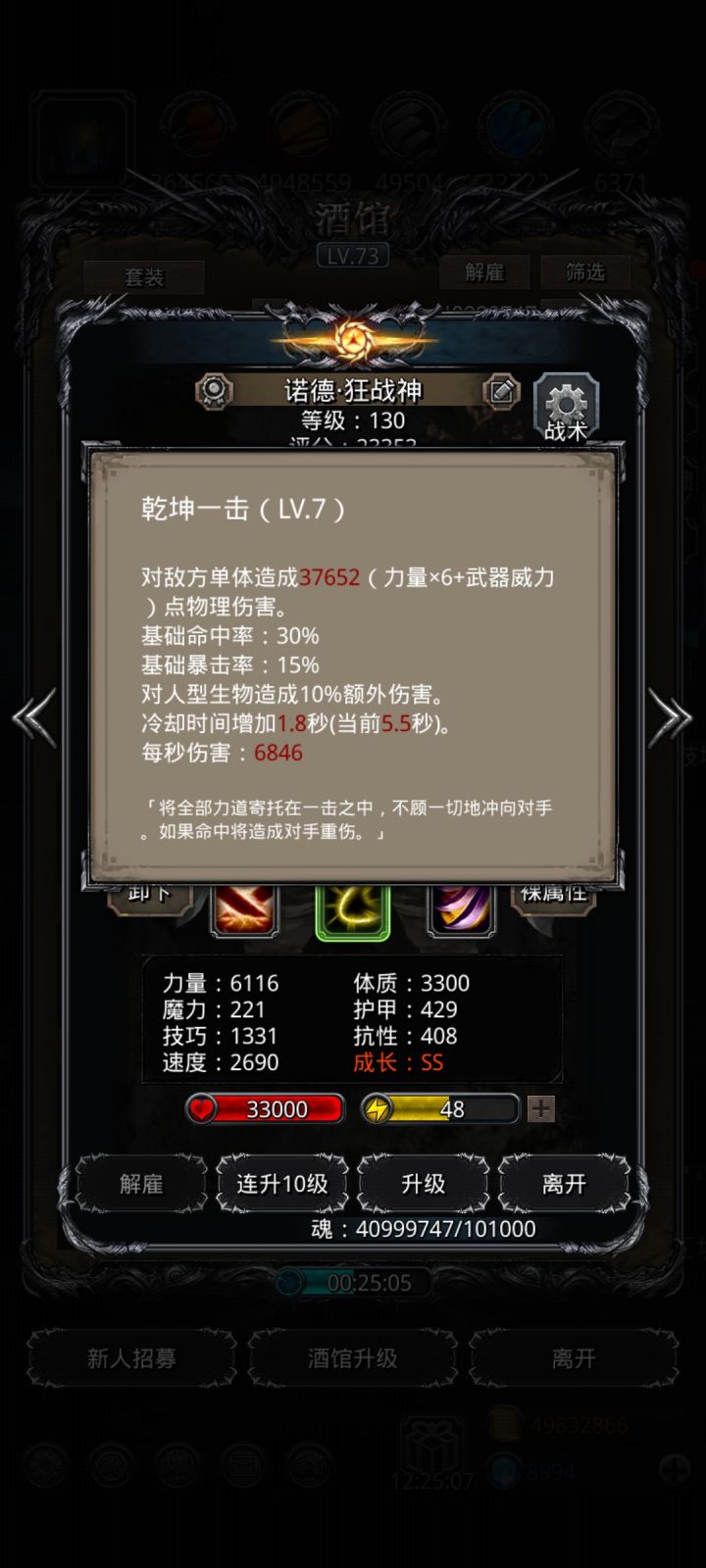 基于wiki攻略有所修改,我是满锻满圣迹130级。传法奶的同时给剑魔加技巧,剑魔带蓝剑,然后两种选择:带云中甲和无视暴君石,或带邪瞳甲和连击暴君石。只防晕不防灼烧,因为即使dot到4500也能自己吸回来。其他人免疫灼烧和晕。输出:三人都是无视750满命中单攻血最低。蛮子和夜魇带单吸战利品,这次没带氪金战利品但魔石主属性86,实战剑魔的配置更低,面板伤害约14500就过了。……才发现剑魔应该可