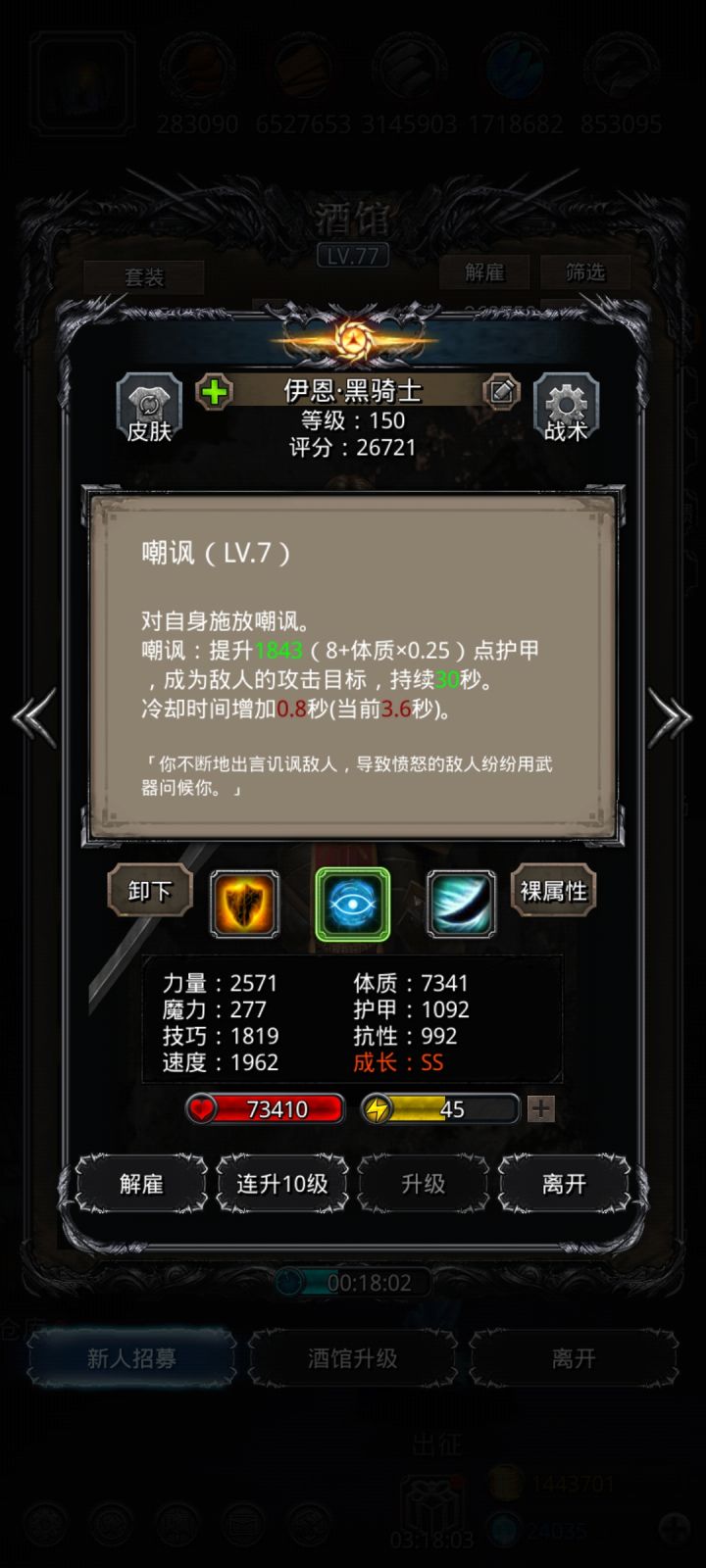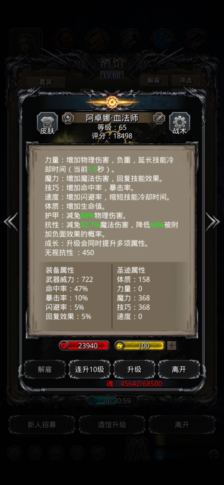 这个boss对操作有要求所有人的血量只要刚好超过3万就行,神官技巧越高对黑骑的体质要求就越低。虚空法师技巧4600+越高越好。传法堆魔力,神官战利品带体魔所有人都不要带先发,赌boss群攻①黑骑:只嘲讽,体质6w3,护甲900+②传法:始终奶, 详细操作看后面③神官:80奶队友,其他全关④虚空:只开虚弱详细操作:1、 开局: 其他自动,法师手动。boss群攻之后,夺魂伤害(1秒