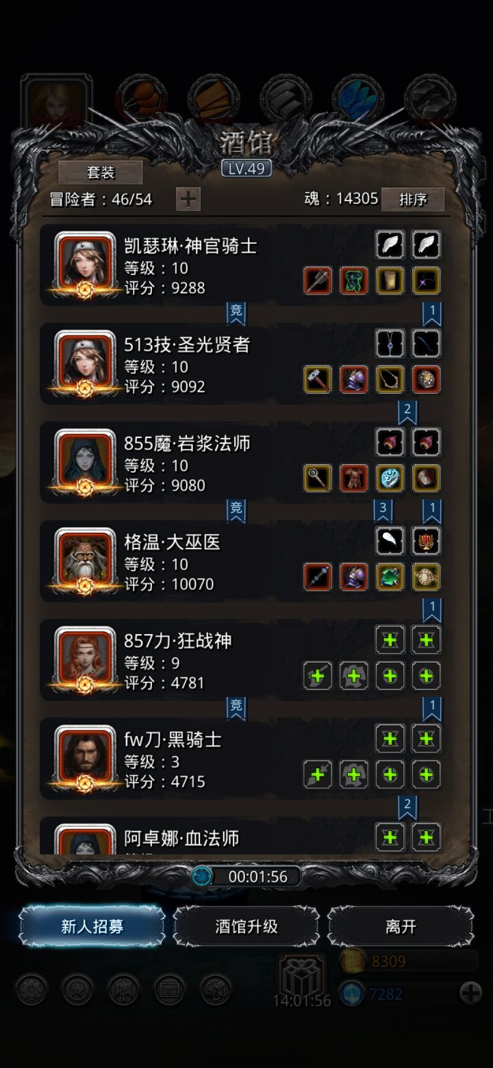 传猎和狂战输出打总生命最高诡术减技boss然后手动boss和右边小怪一起轮流减技,boss死后小怪轮流减技虚空设置减力总生命最高,boss死后可以关减力开吸血鳞甲方面,狂战是力体,传猎是体技,虚空是魔技。我是三个满级环一个49级环,其中三个伤害一个命中率给诡术(重要的是提供技巧属性,命中率应该不必要)输出比较富余,有多出十几秒,配置应该还可以下调。