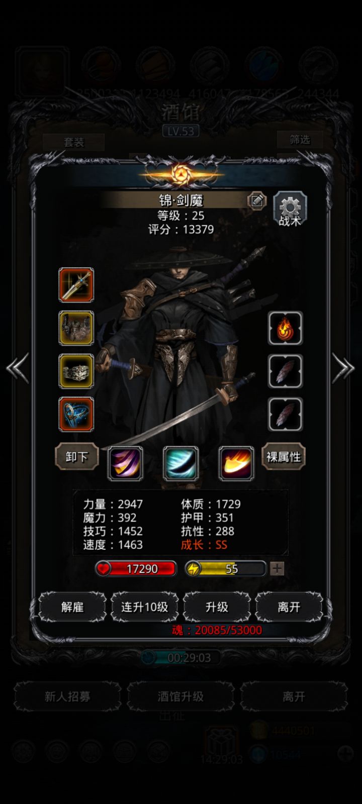 我这个技巧最低需要祭祀和虚空788的抗性。火法看运气只要到2分40秒没有减技巧buff奶一口提升技巧就过了。血量祭祀-火法-幻境-枪。搞了个及格祭祀才过,之前的太垃圾了,石头都换来升级了。