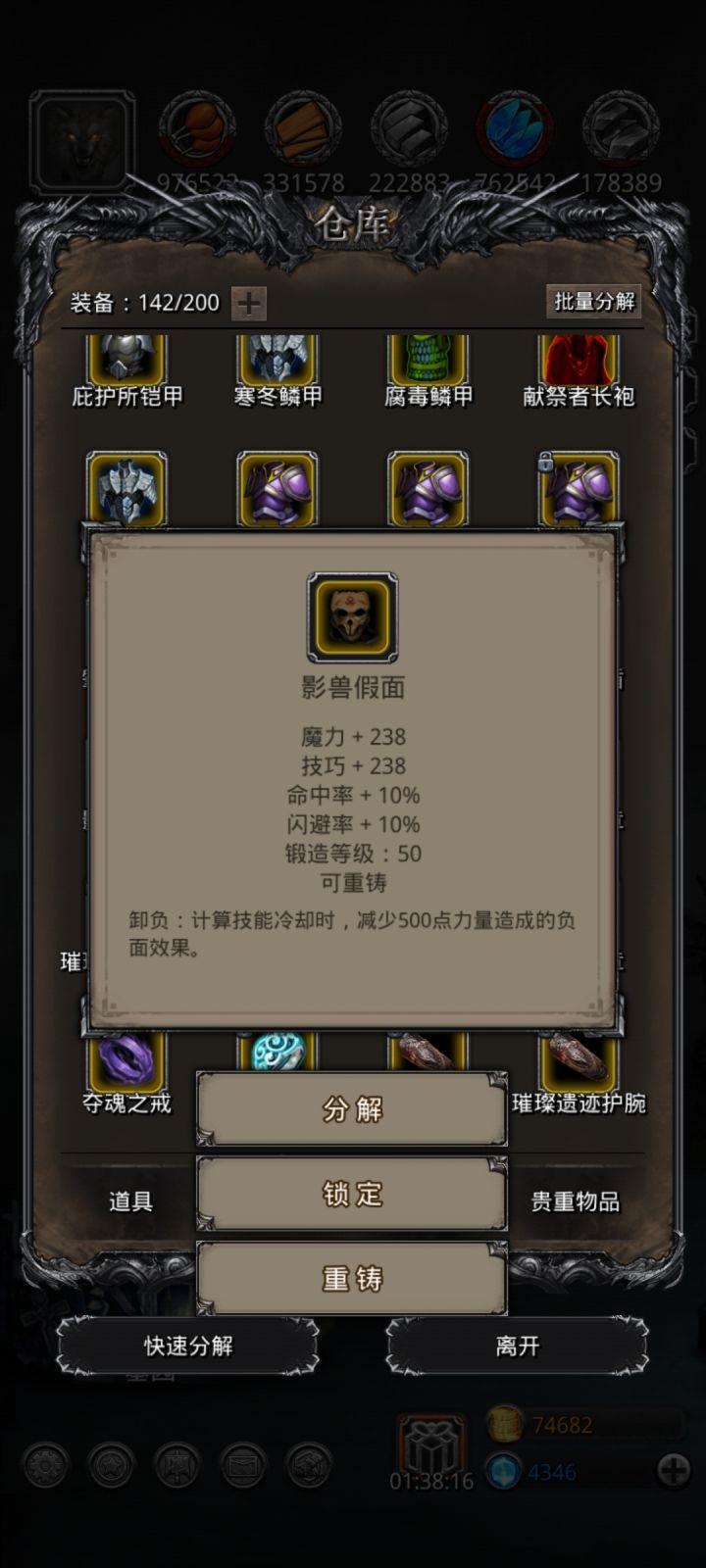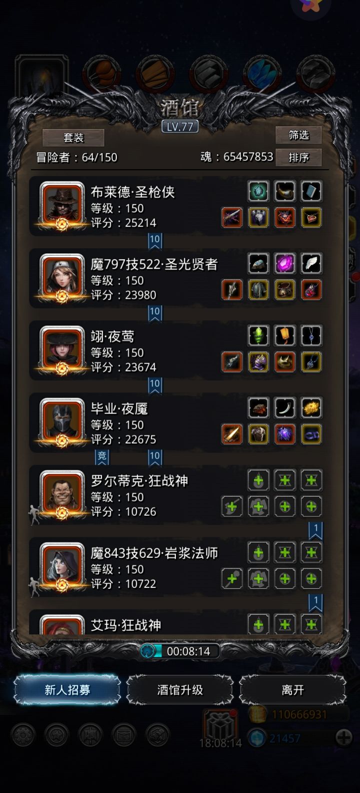 出战角色全是堆技巧的,装备和战利品咋分配都不够用,最后还是优先给圣龙,法师和祭祀堆到攻略的合格线,巫医只有1147秒回(攻略1200+),只能刷脸盼着圣锤多出几次特效了,今天翻车了20+次,最后才刷脸成功,侥幸通过