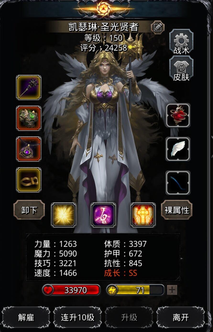 全是破烂战利品,技巧+7.3的战利品都给用上了,魔石一个70副本,一个64技,麻了。这都过了,还余七八秒。只要2分40幻境死之前火法奶一口加技巧,一秒咒火直接掉30000+。记得把传猎这种开猎龙,别给咒火buff顶了。