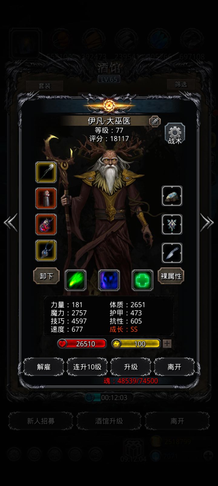 全是破烂战利品,技巧+7.3的战利品都给用上了,魔石一个70副本,一个64技,麻了。这都过了,还余七八秒。只要2分40幻境死之前火法奶一口加技巧,一秒咒火直接掉30000+。记得把传猎这种开猎龙,别给咒火buff顶了。