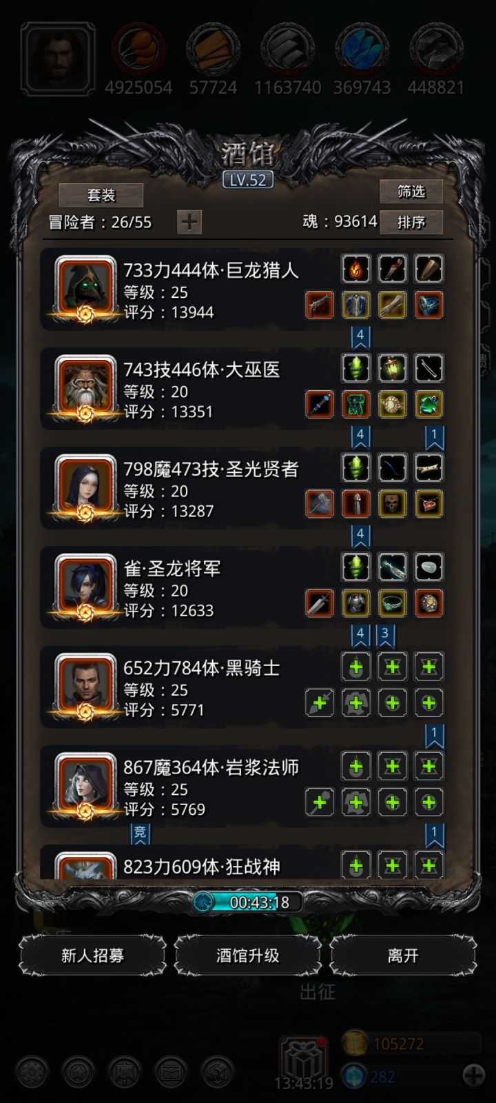 先说下BOSS机制,与图23的不死冥虫一样超高额单体回复,仍然有且只有秒杀一法,但斩杀线有所提高,图23的是血量低于59万以下触发回复,然而图25BOSS血量低于70万就触发回复!大体有以下几种杀法:①裂狱蛮+龙杖火+弗鲁梅格剑剑豪;②裂狱蛮+龙杖火+狂魔蛮;③裂狱蛮+龙杖火+圣龙(此组合操作有些麻烦,易失误不推荐,下面便不做介绍)。①组合参考配装如下: 蛮子出特效一刀44万左右,特效