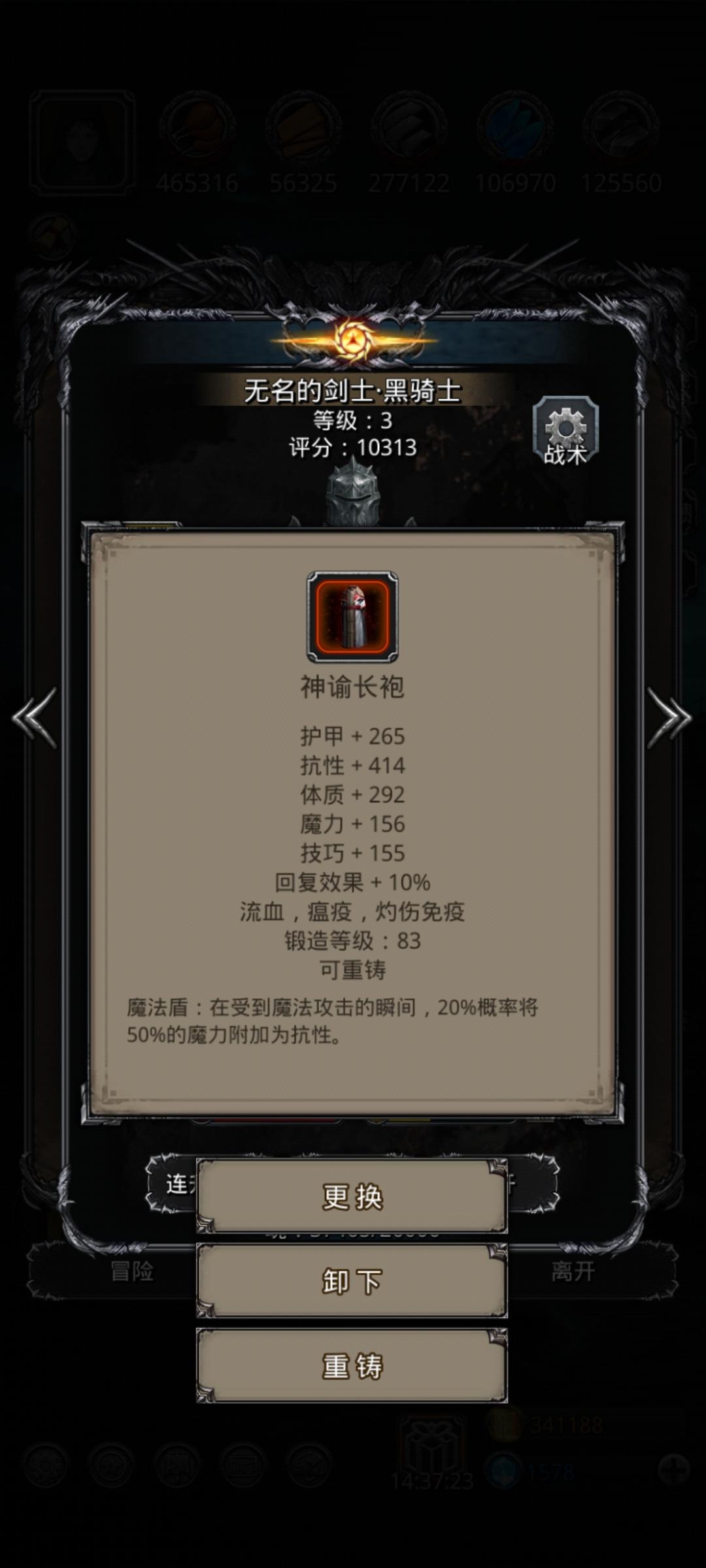 部分氪金战利品,自己配了好久这套伤害很足,刷脸次数少,请放心食用!保证面板88命中!!!祭祀主技巧,技能始终奶。神官主魔力,技能48自己80队友。圣枪蛮子你们懂的。下面上图咯