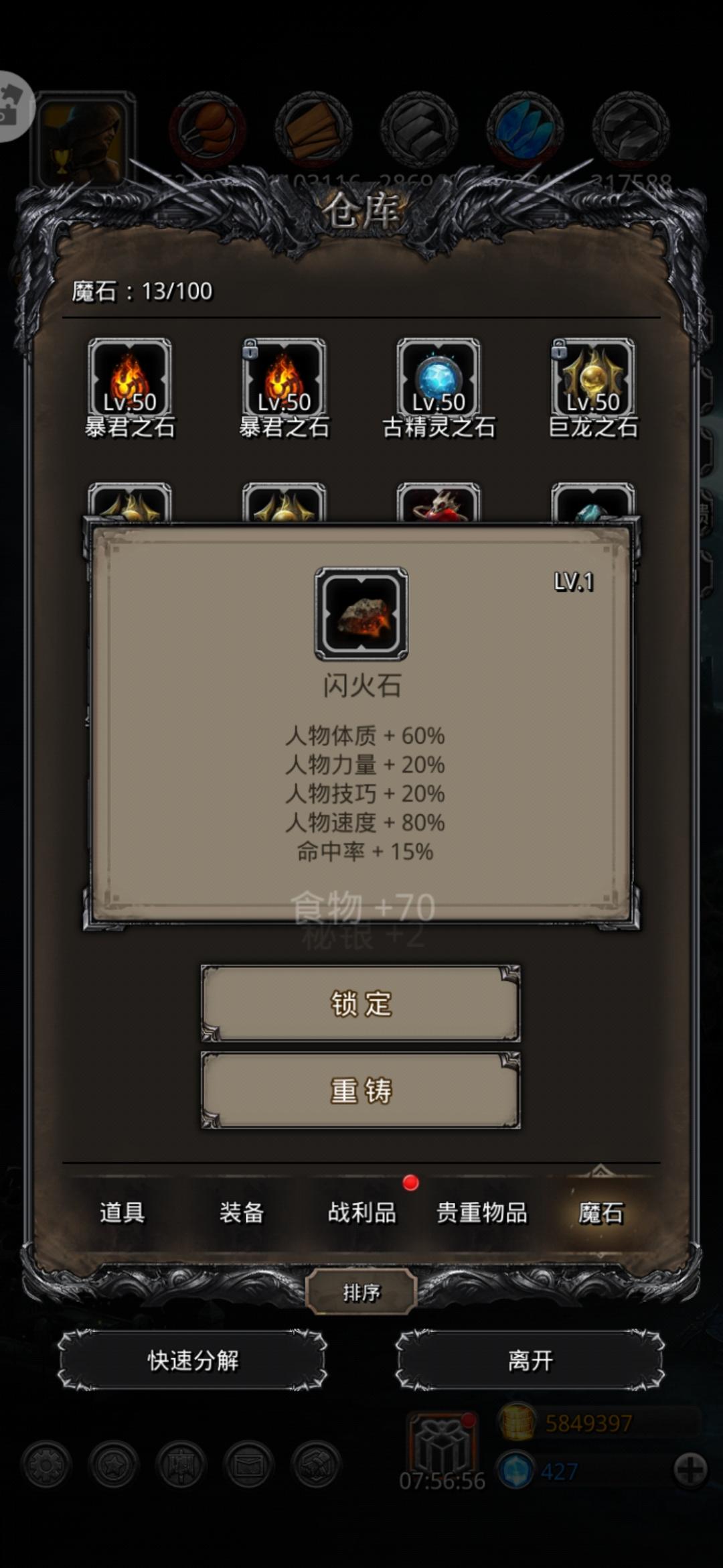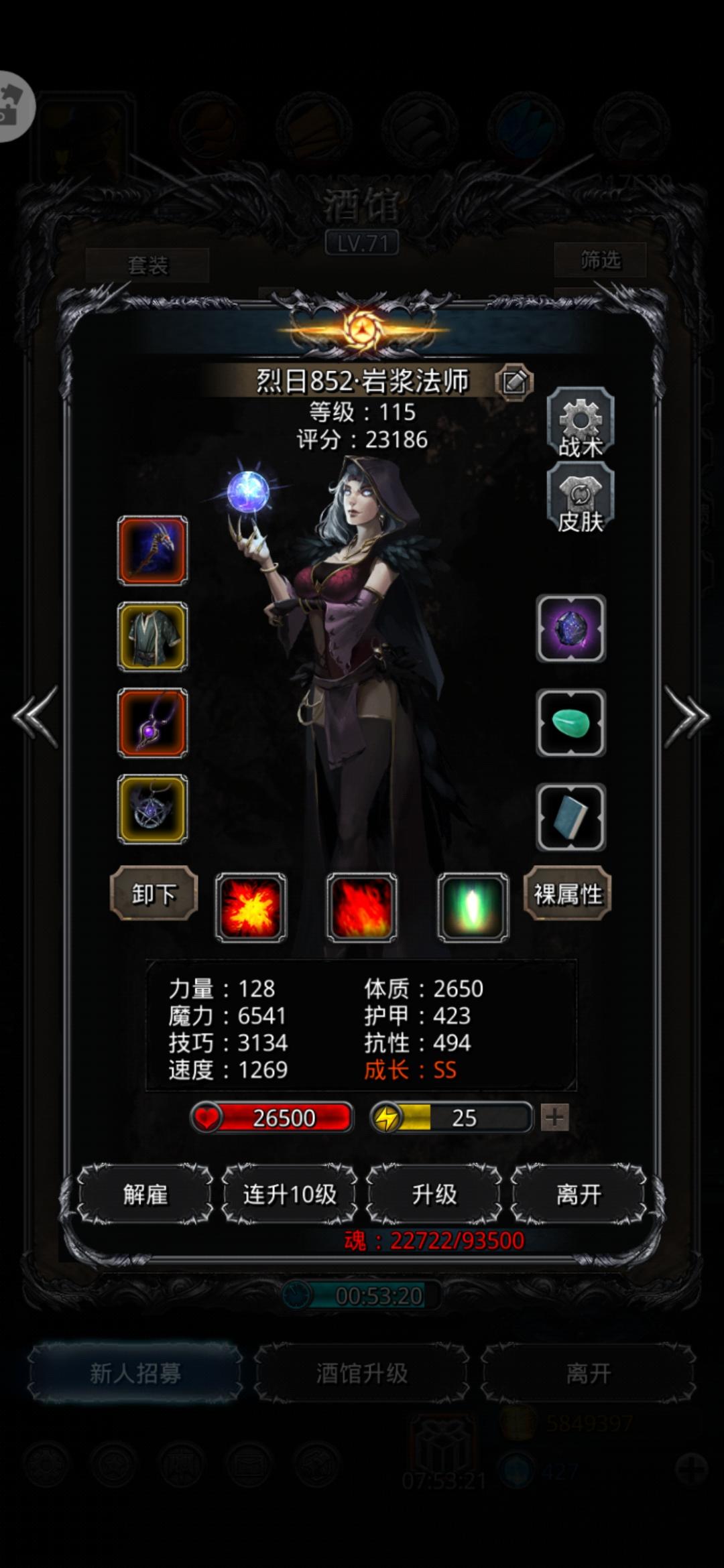 26开荒队 低配独裁: 战利品技巧 魔石最高技祭祀:战利品星国+技巧 魔石次高技/龙巫妖火法:战利品命中+魔力 魔石最高魔狂战:战利品命中+力量 魔石最高力独裁破甲 祭祀始终奶火法55队友攻击血量最低狂战攻击血量最低幽魂/蜥蜴/行尸/猎手/大眼 都挂机