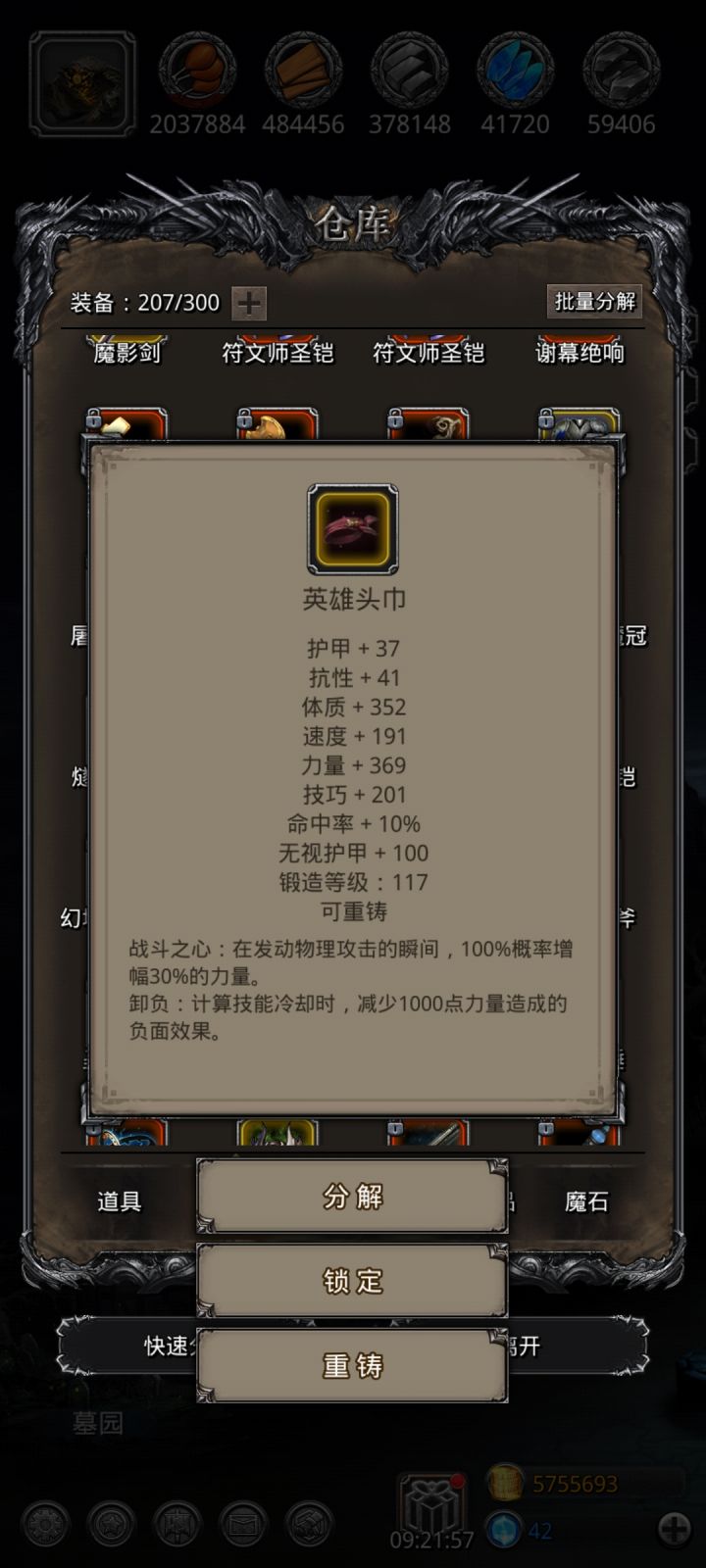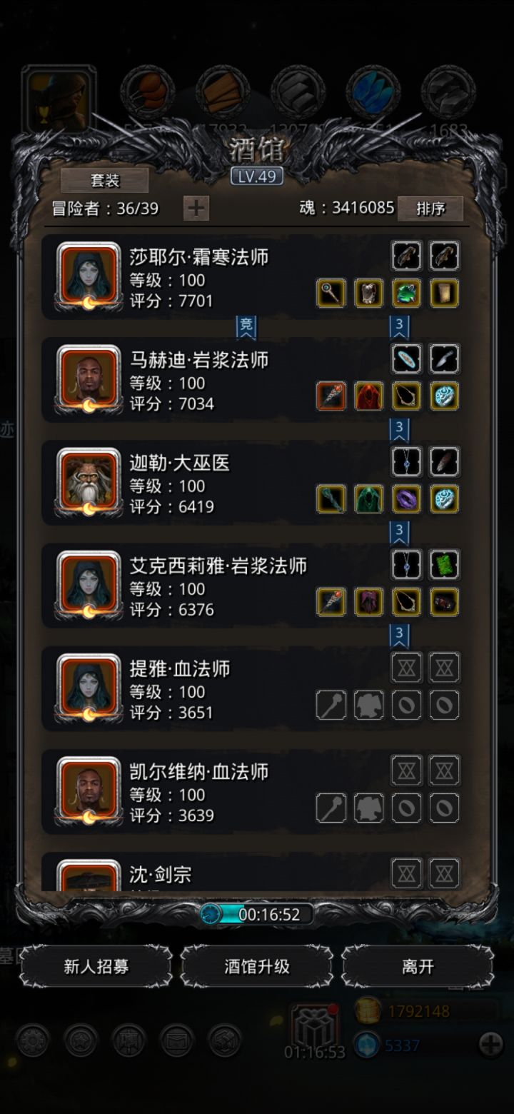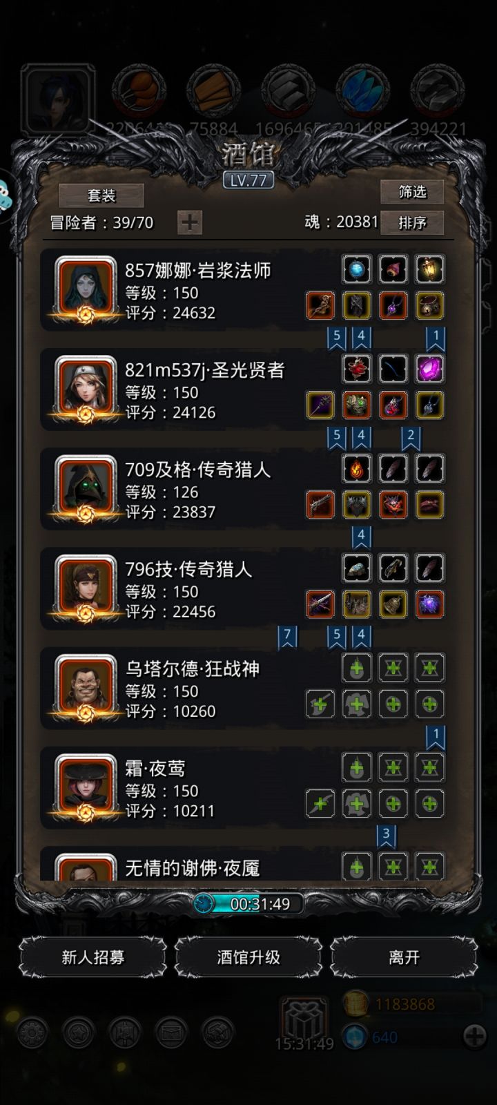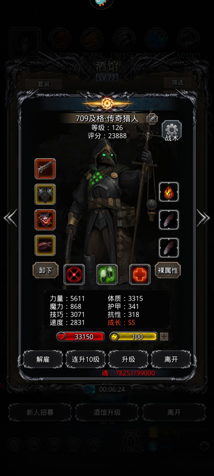 圣迹:蛮子70,战士60,法师60,刺客60魔石:全13%命中,剑豪15狂暴110锻造等级,装备未达上限。具体数据在下面。