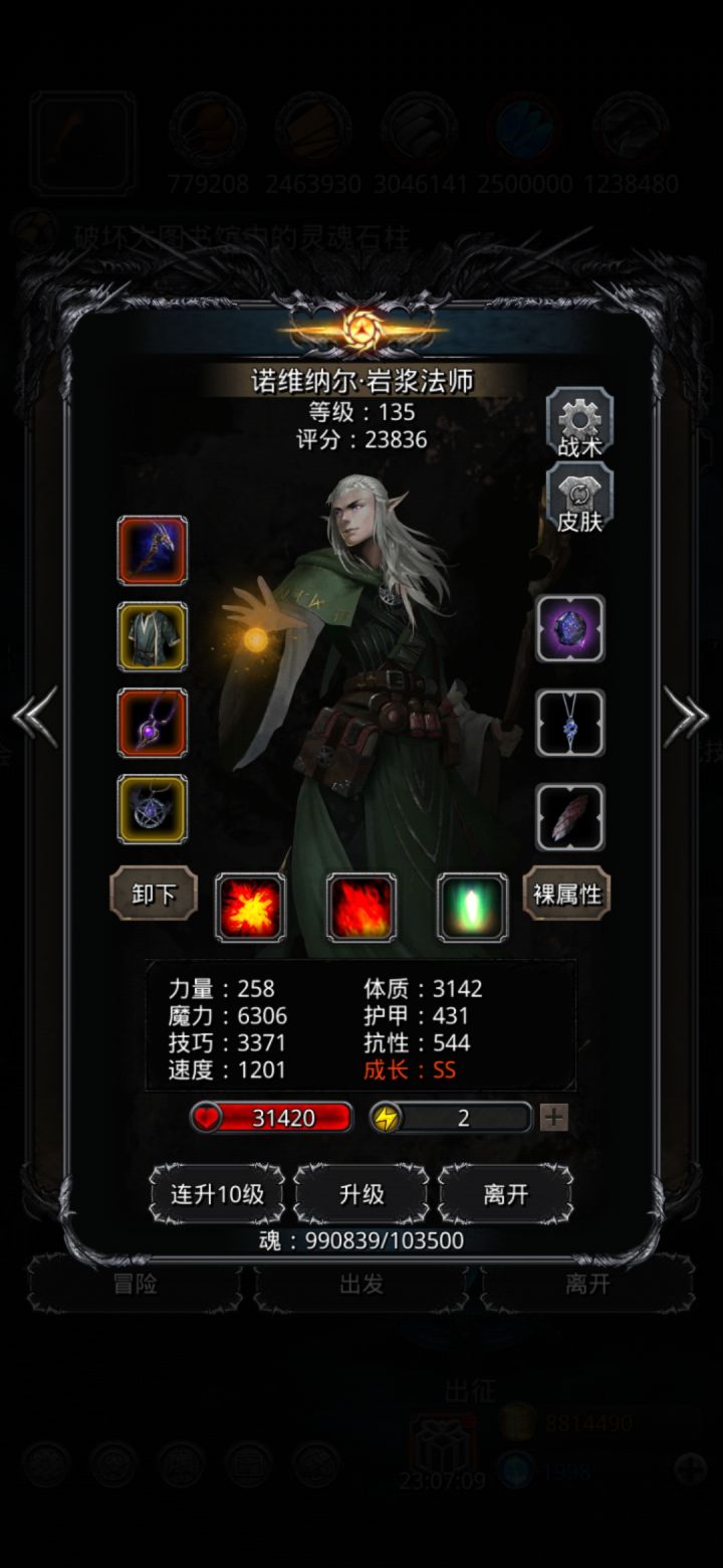 另外这个站位有个好处在于小怪省事,打小怪的时候火刑直接收割剩余最多,圣光始终奶,其余的打单攻最低,火法100奶友方,这样一来三输出第一击都是一个目标,最多两次攻击就把一个小怪打入奶线了,不需要手动再切换火刑的攻击模式,火刑和火法也不需要单体吸血,可以直接堆输出,另外夜魇最好带一个单吸,否则有暴毙的可能,不过如果换成飓风凯,夜魇也不需要单吸,就是没有好的物伤,速度战利品的话,输出有些低