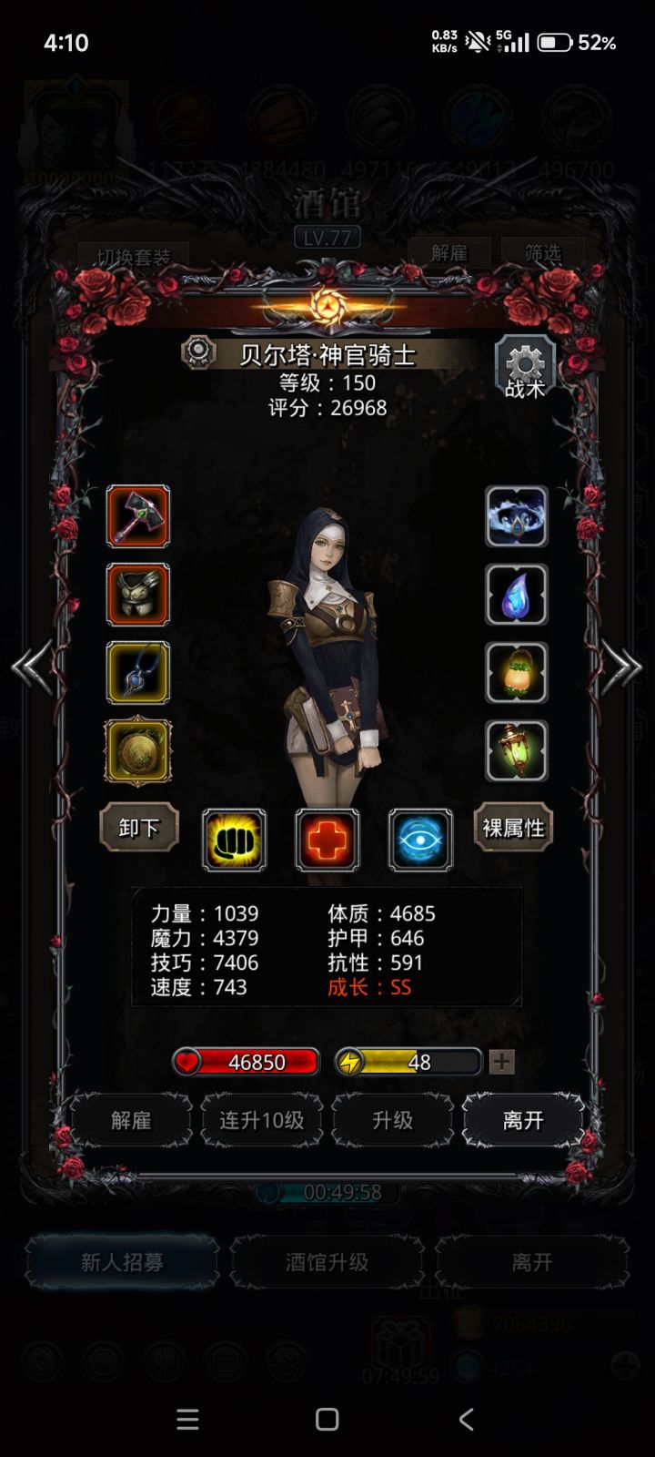 首先感谢wiki大佬的攻略,要点已经很齐全了。我大概翻车了四五队(八九次),中途反复调整,最后刷脸过了。装备如图,基本和攻略一的配装一样,我主线冲快了遗迹刚进19,没升天命轮,只能用天使轮。两个神官一个纯技、一个魔技(回复),因为boss会单攻双抗最低的,别人顶不住,只能狂战拿万魔甲的被动去扛,我是提前打了战测拿了万魔甲⭐,血量还一度被压到1/3,不知道不带⭐的万魔甲能不能扛得住。比较关键的就