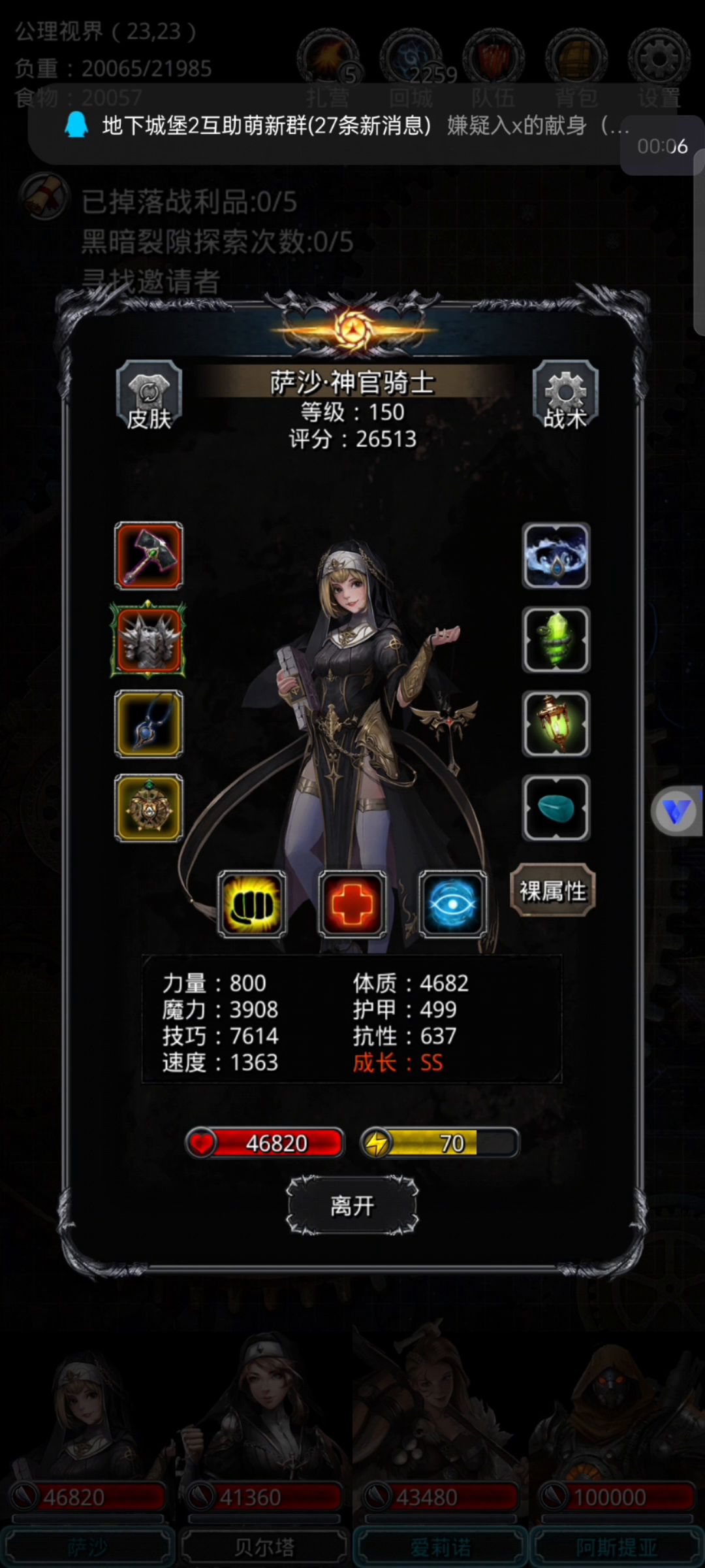 配装参考自安测,双神官黑曜+天命/海兽+王国戒,不刷生存,很稳(视频练度仅供参考) 神官配装参考 最高技巧优先给海兽神官,面板数值不低于7100 次高技巧给黑曜神官,面板数值不低于7250 狂战/蛮荒战利品分配 狂战保证面板+技能总命中90(不算技巧)同时疯狂堆力量 蛮荒只堆最高力 牧星秒伤 牧星技能7w5秒伤是最低要求,在此基础上秒伤越高越好 注意事项 双神官带先发,技巧先发优先 海兽神官魔石禁