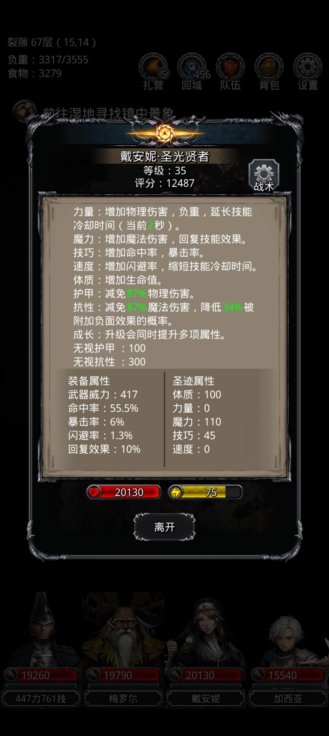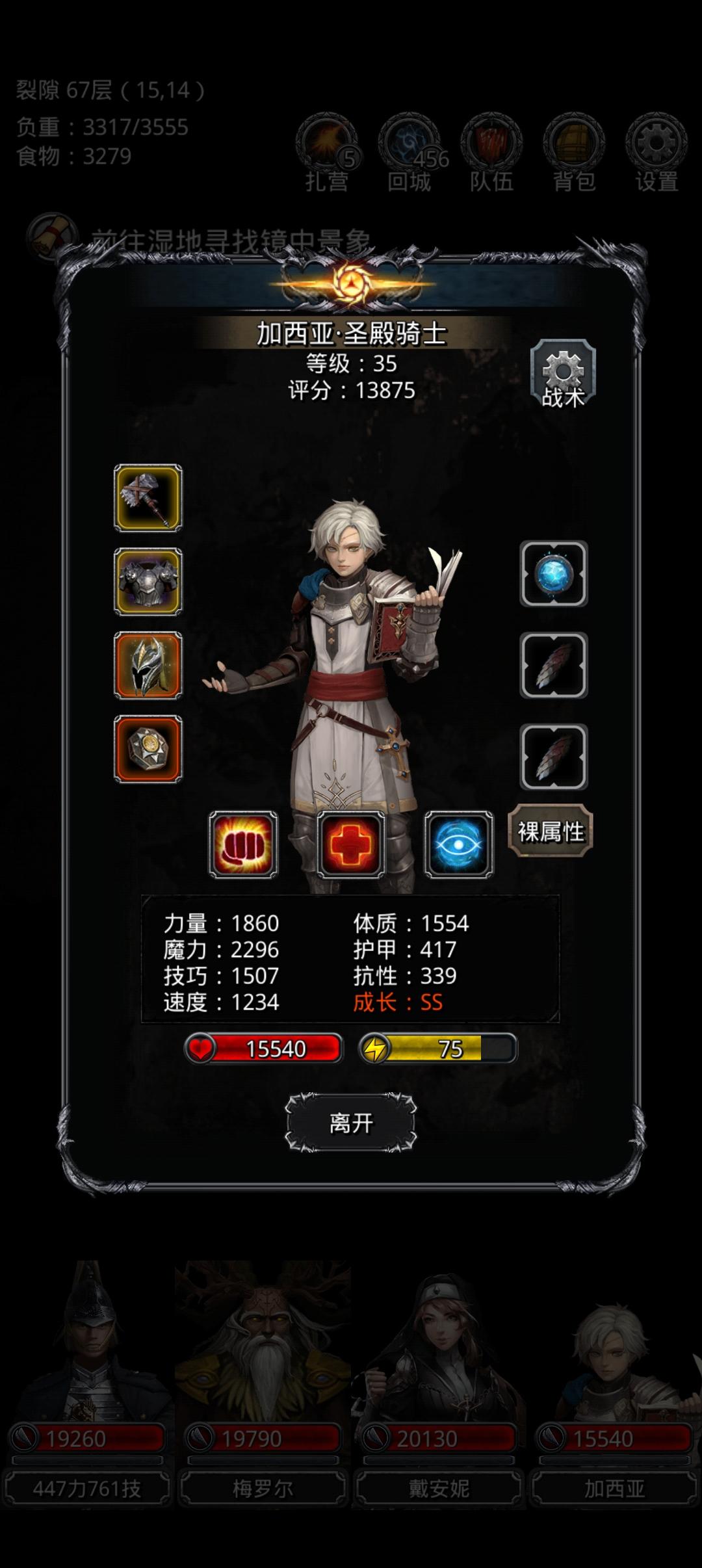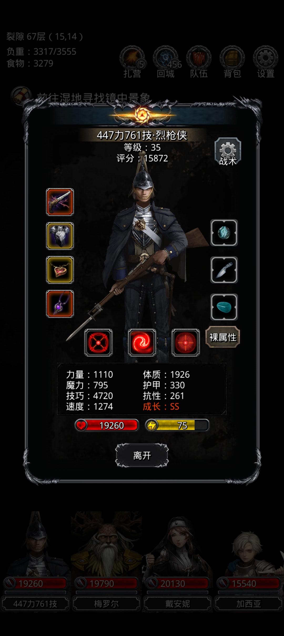 67影兽记录(前面翻车三天)不知道是不是三乌鸦乱杀前面两次晕到影兽,不知道怎么翻的车,估计是技巧不够,又给幻境双命中换了一个技巧。含泪给速度石头留的紫金矿换了敏捷石头就一遍过了(烈枪前面带的高技暴君)😂。圣殿的灰岩圣窟锤好用,感觉圣光不需要输出,减抗挂机就行,堆了纯命中,减抗7000多伤害,群攻13000多伤害面板圣殿13命中古精灵(命中暴君应该也没问题)。72命中,105异常圣光15命中乌鸦。55命中,105异常幻境异常乌鸦。命中64,110异常烈枪是回复魔抗特效水流石我的幻境比及格低好几十技巧日的,但是三乌鸦感觉也不算低配了起手圣殿关自动,等幻境攻击完了再开自动,没研究过占位幻境在左边是不是可以无脑全程挂机,也请大佬科普一下