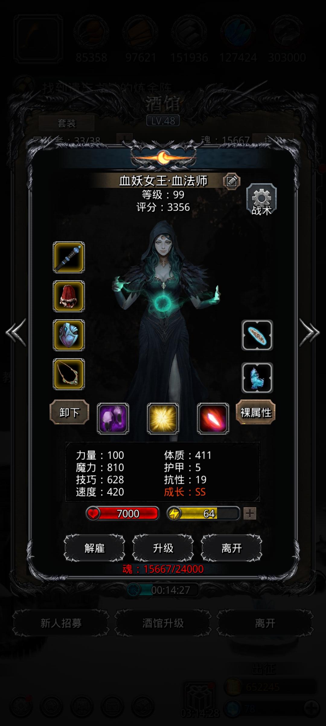 为了过这个boss,亏了好多魂、红石头,解雇英雄招传法(结果还是个不及格的鹿角传法)……然后白白又多日了个火法结果没过……阵容:火法、巫医、圣光、传法。这个阵容比较稳,挂机就行,我全程没动手(切出App玩其它了),脸黑的话多挂几次。火法:1%奶队友、单攻最高、魔战利品。巫医:只瘟疫最高攻,魔战利品。圣光:始终奶,对技巧,带了迷雾岛衣服了。传法:只1%奶队友,不攻击,战利品带了护甲和抗性。