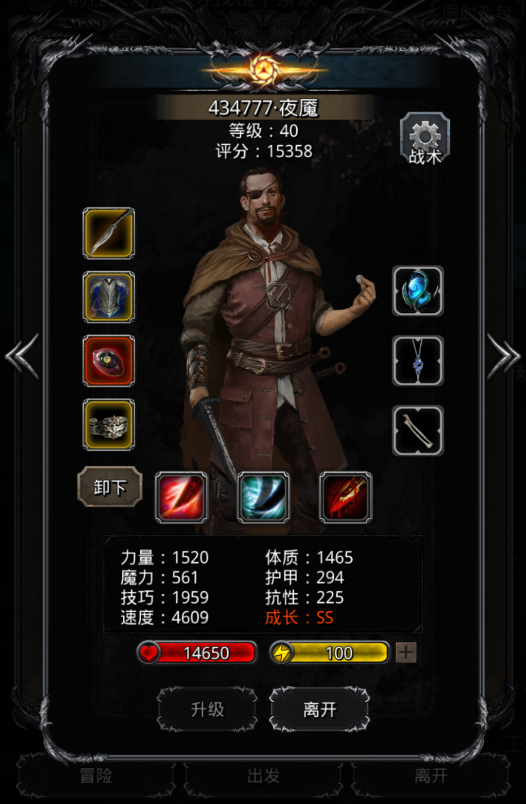 战力测试SS通过以后,AFK了一段时间,回归后先通过了裂隙67,然后图20推了大部分,以后通关遗迹10,之后通关图20才打的战力测试SSS-和SSS,段位110,不过装备大多是100的时候锤的。对于我来说SSS-很简单,但是SSS卡了一天,怎么打都差100多万,北冥大佬的攻略研究半天,就是过不了,可能脸太黑,然后换了一个阵容,先上图魔石都是加命中的,主属性最高70多,都是垃圾货,战利品看命中,