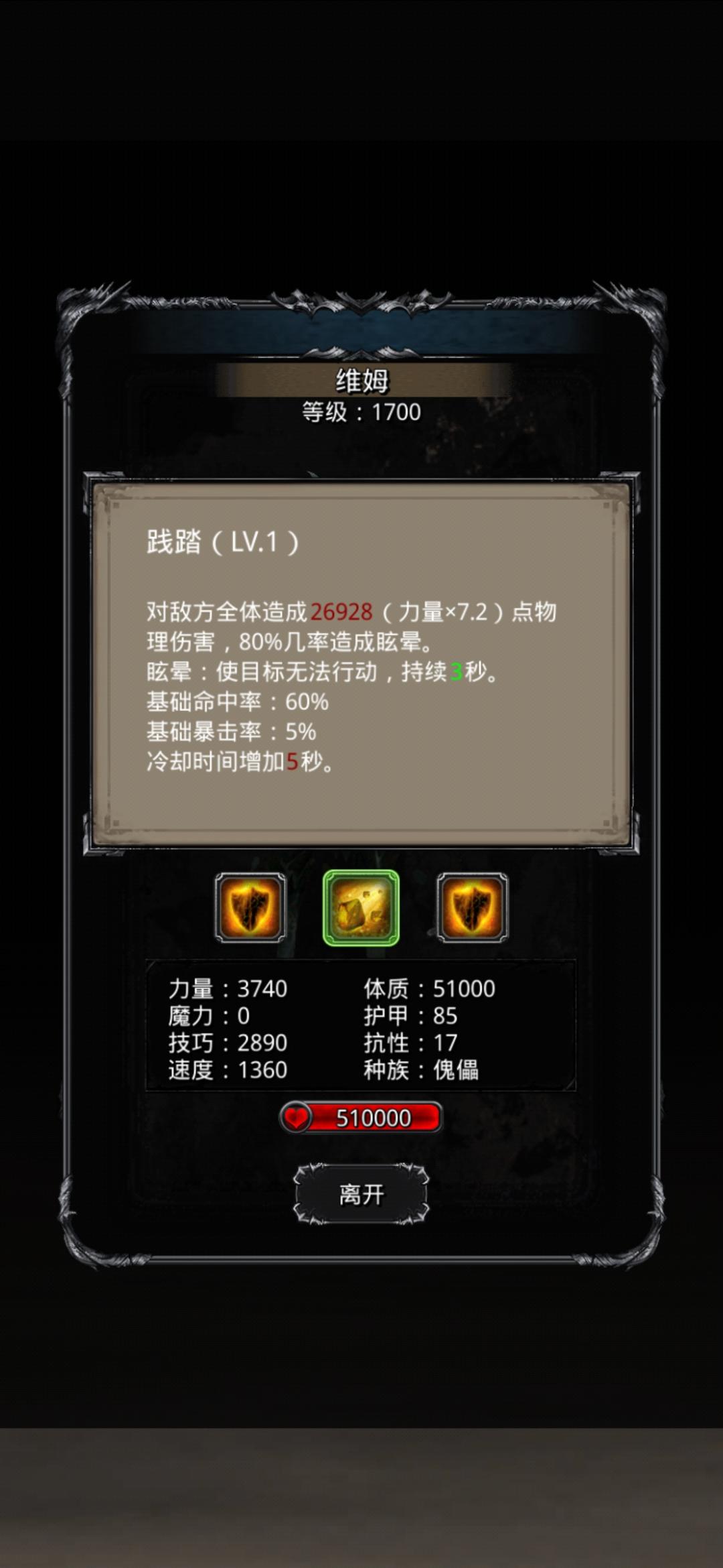 维姆hp:51万,免疫所有异常,无法用猎神和神罚减抗,减免25%的伤害,所以只需要用14图的无视护甲武器就能轻松过。绝不推荐用其他的武器!绝不推荐!绝不推荐!(锻高大佬请无视)重伤法。阵容:法(拉重伤设置1%其他不开),巫医(手动奶法师和蛊毒术),狂狂(其他高输出也行)输出堆命中,其他随意,反正死不了。Bosscd是9.2秒,无视负面,2:30狂暴灭团按照一直二的情况总共会打出16次的技能