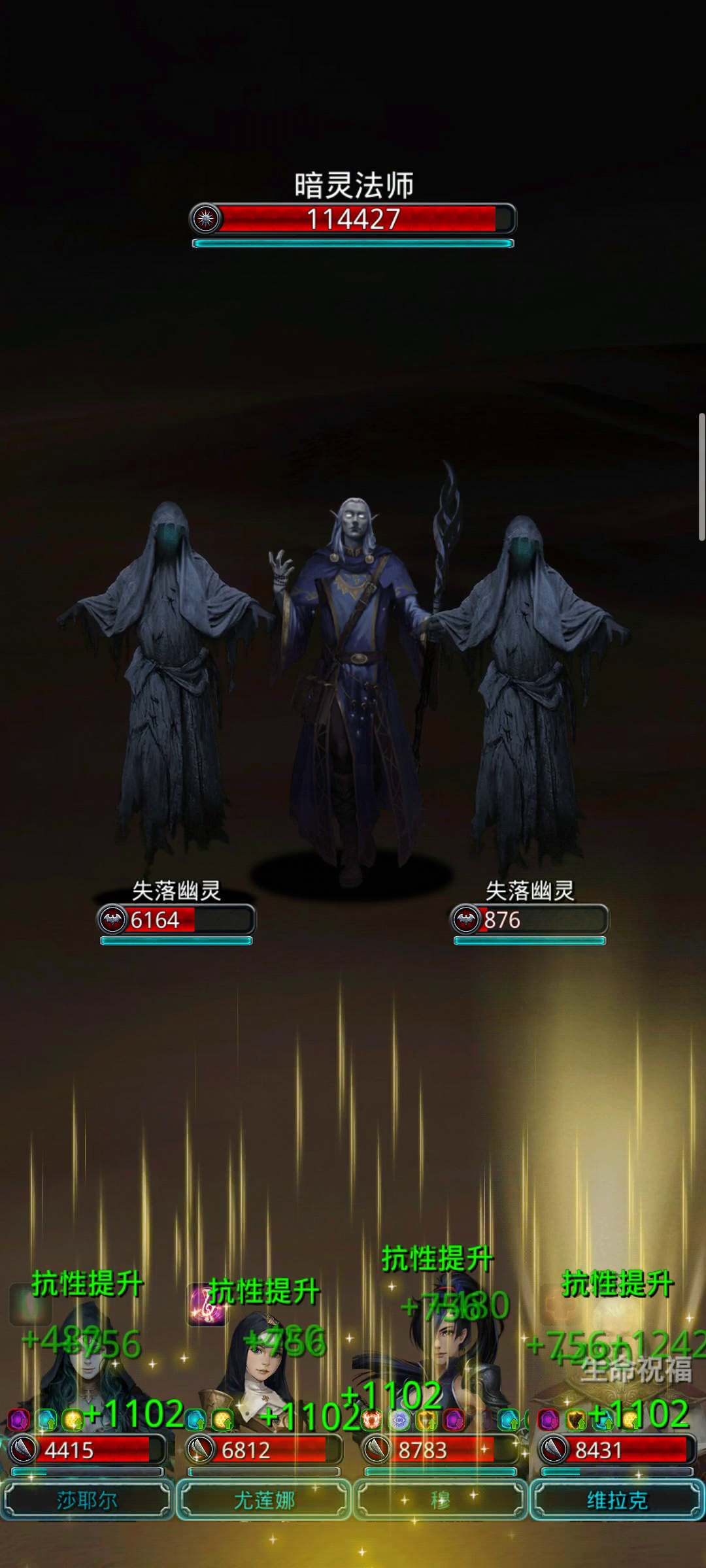 终于过了,卡了足足2天,配装如图,参考了群里大佬配装,圣殿先发嘲讽,火法单血最低,剑豪单最高,火刑2人群