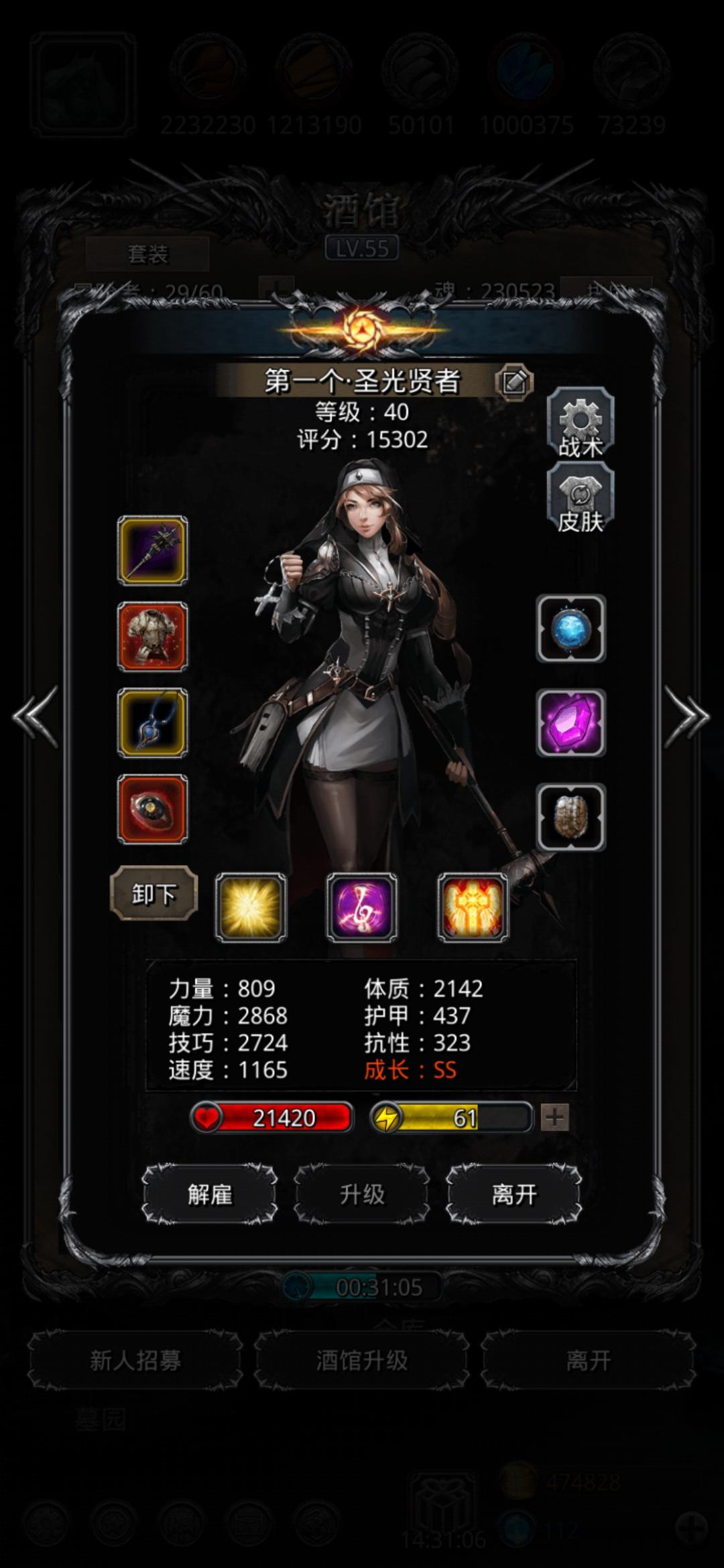 之前看贴吧的帖子神官骑圣光冰火法师过的我玩了三天连打手都没打死就无限团灭。今天又看了一个别的帖子说用黑骑替代冰法(能抗)的打法。用骑神官火祭打的,还说用神官骑士输出。我一合计用巫医替代神官骑士他不香吗巫医的总奶量比神官高多了,然后我就一次过了甚至全员无重伤直接过的。两个不及格属性照样过了59,本人还没有圣庭。