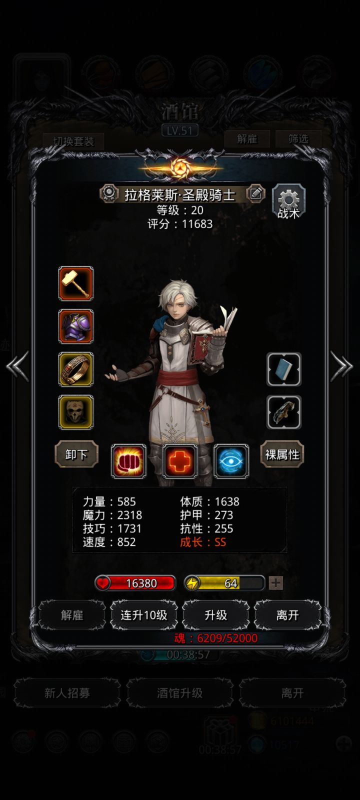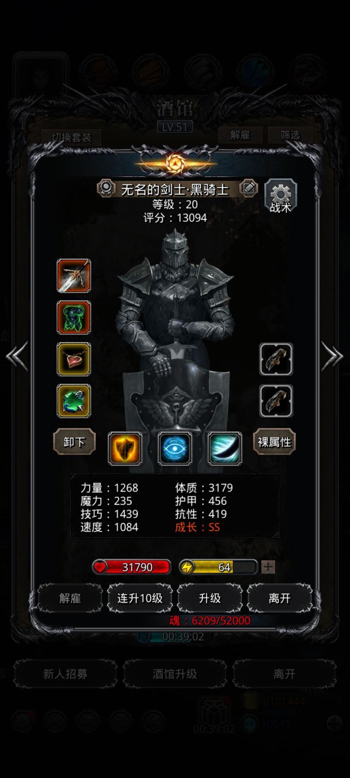 战利品与战术设置:黑骑,体质,嘲讽;圣殿,先发/体质,手动奶巫医,护甲,55/80奶火法,命中魔力,火球由于没3000力,开局会掉血,因此,开局法师群奶一次转自动,巫医奶黑骑一次转自动,圣殿奶2次黑骑然后就可以根据boss攻击进行奶人。boss3个技能,单攻,群攻,不屈buff。攻击模式为:开局不屈,单攻,群攻,单攻,群攻,单攻,群攻,单攻……单攻与群攻交错进行。等到buff效果消失后