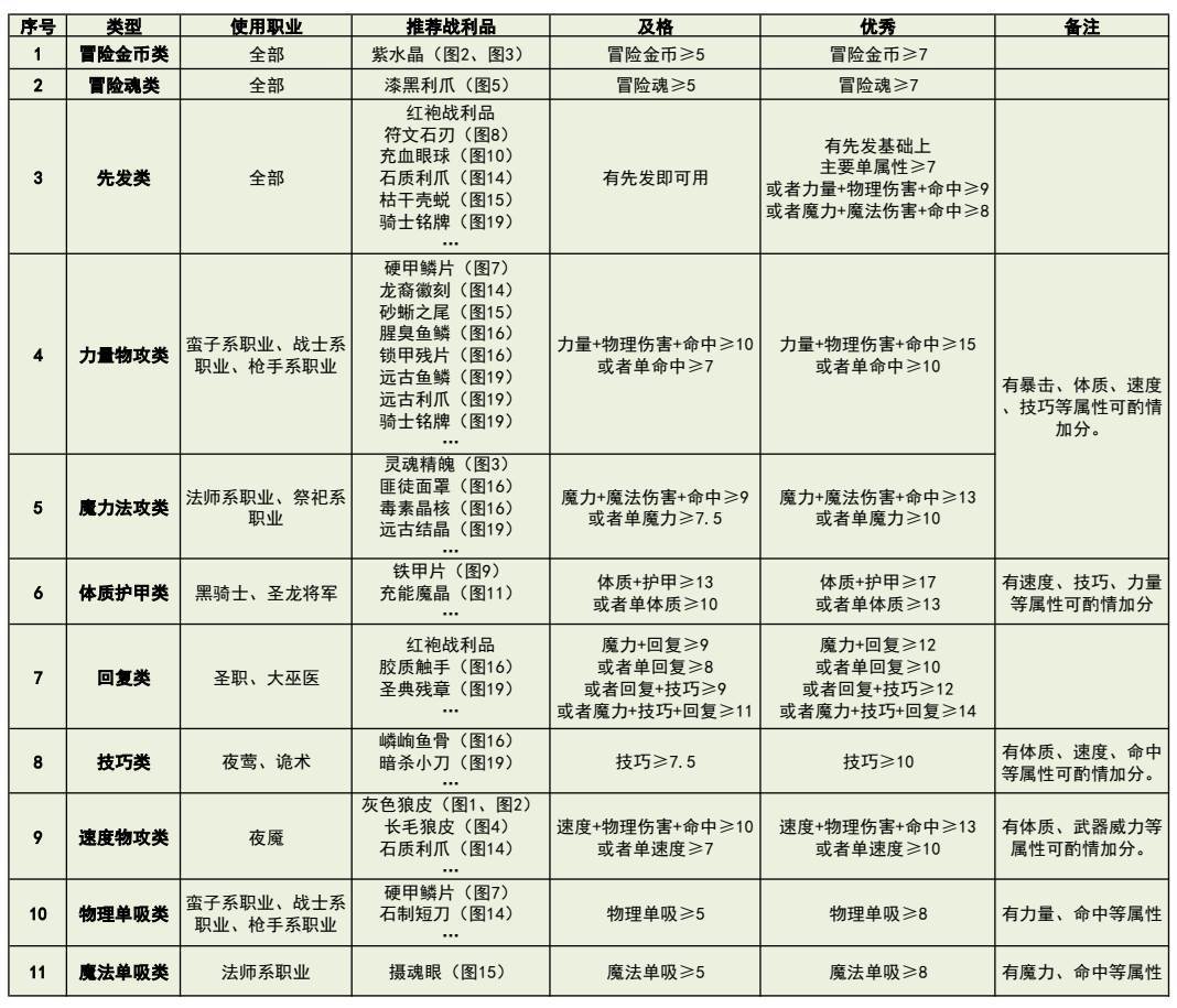 做了一个战利品评定标准,仅供参考1、列举的战利品仅仅是一些代表性的,不代表全部。2、有一些不常升的战利品也可能出极品属性。3、吸血类战利品只是在特定的某些地方会用到,如裂隙63。4、闪避类战利品仅仅在图16前能用到,但也不是必须。图17以后无用,因此没有涵盖进去。5、只有紫水晶是100%出冒险金币属性,而且很容易刷,所以优先推荐。其余有些战利品如航海手册、刺杀者守则等是概率出。
