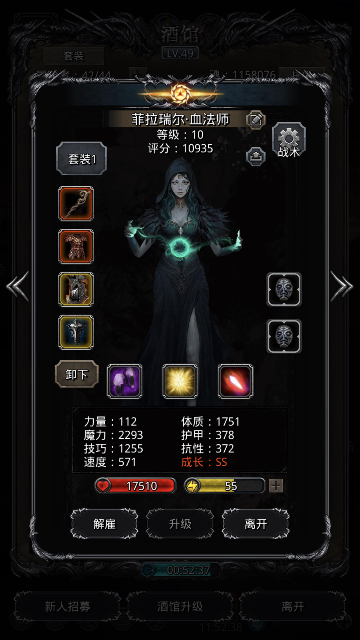 分享下我的装备 只有1个自制红装大贤者(铁血符文)所有装备都是85左右锤的先打小的输出够的,血法命中38 ,黑骑命中28,黑骑力速有点高,能低点更好。最好还手动补下嘲讽,不然很容易翻车圣光始终奶黑骑带先发黑骑魔抗+(圣光技巧➗4)不低于600 位了防止黑骑被破甲,我刚好601圣光护甲至少550+不然狂暴后扛不住4分钟前巫医手动轮流奶黑骑 巫医 祭祀 血法不用管4分钟后黑骑虚弱