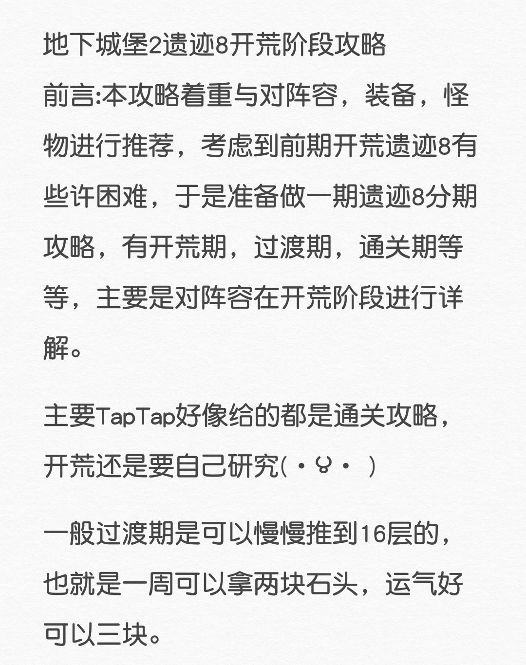 地下城堡2遗迹8开荒阶段攻略(以更改成图片样式)
