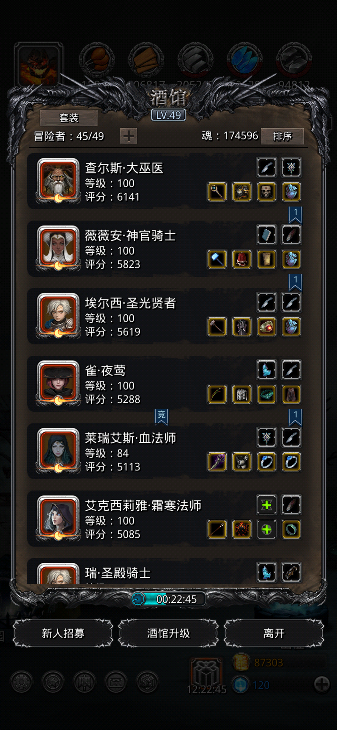 神官奶量4900,带先发巫医回复1250左右黑骑拉跨,你们肯定比这个高剑豪我这个可以刷脸过,血量14000以上打法:开局赌单攻,神官手动奶黑骑,能奶两次,巫医手动奶黑骑以后的群攻保证剑豪身上有护甲buff,巫医适当奶神官,三分钟后,单攻前保证黑骑身上有buff,群攻前保证剑豪巫医身上有buff基本上能打到4分30秒