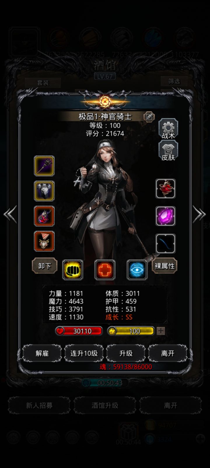 本攻略参考自——百度贴吧楼主-玉启旅人进度:刚通遗迹12打过裂隙76战力测试Z+圣迹:战士70,蛮子80,火枪80刺客80,法师86,祭祀80法师圣迹可以不用这么高,我只是体质差一点,所以升了一下,顺便多堆了一下技巧,减少刷脸程度阵容:传法+神官+虚空+黑骑全员日100黑骑血量6w+,其他3w+(30010也行)黑骑:始终嘲讽虚空:只开虚弱神官:手动只奶黑骑!!!重点