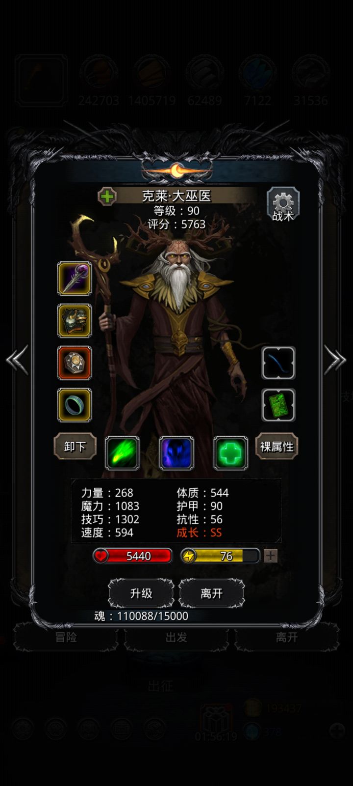 裂缝35:护甲,咸鱼打法全带了免疫眩晕的物防可以低些,但血量要够巫医不用90级,主要堆持续回复血量