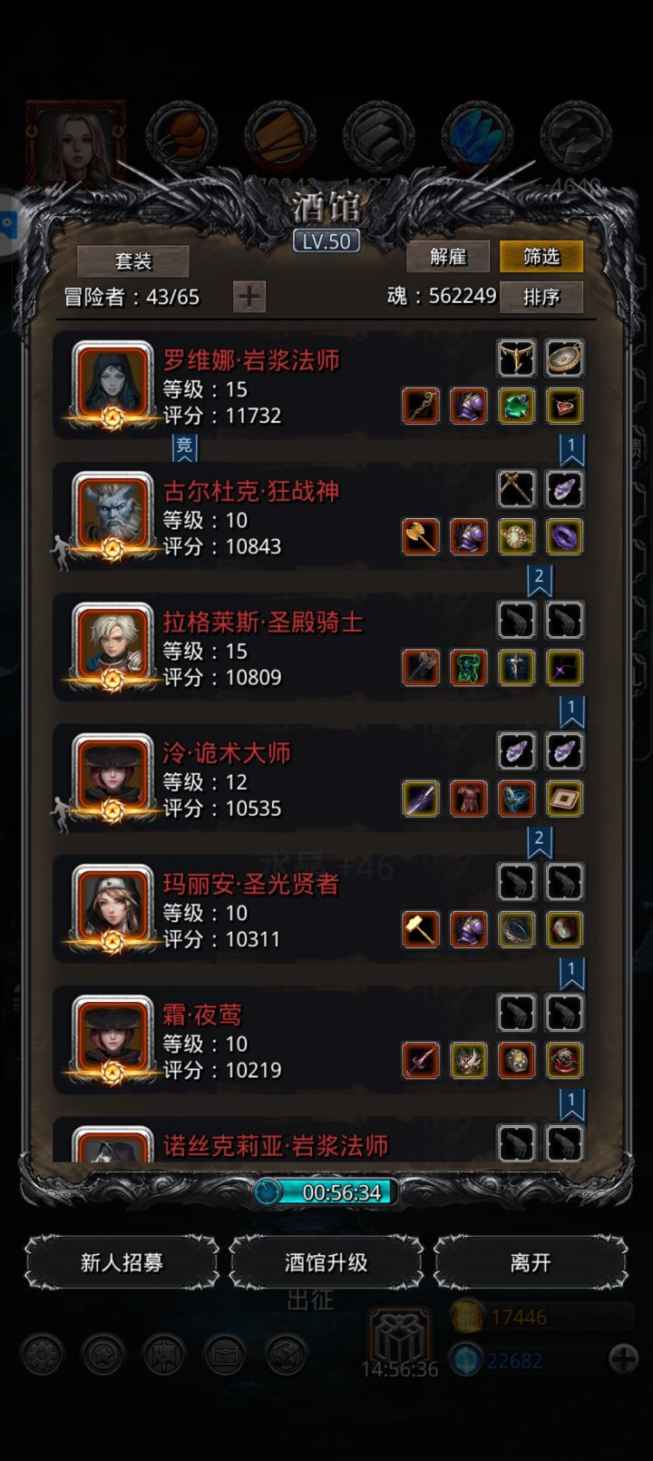 为了能让和我差不多的萌新能理解看懂我的想法,啰嗦亿点点,希望能帮助同为脸黑且没啥好装备的萌新们,用目前差一些的副本随机金装和遗自己做的装备,搭配重伤法偷塔,真是非常合适非洲佬,yyds🌚🌚我的所用英雄是四个月阶一百的SS英雄。很长一段时间里,为了实现跳到38收菜层,魂和大部分装备等资源都围绕着这四个为核心转,穷的一批了,就四个养到这样子都好久了。现在的设想里是38-40-42,然后看看有没有可能