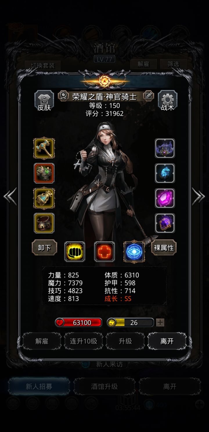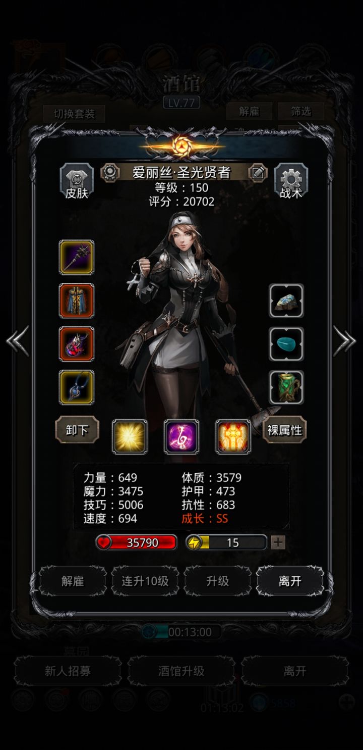 配置如上图,这把人品拉满,火法2.11死的,不影响,我看能杀,最后神官保持蛮子buff稳一手。祭祀始终奶神官50/80火法30队友