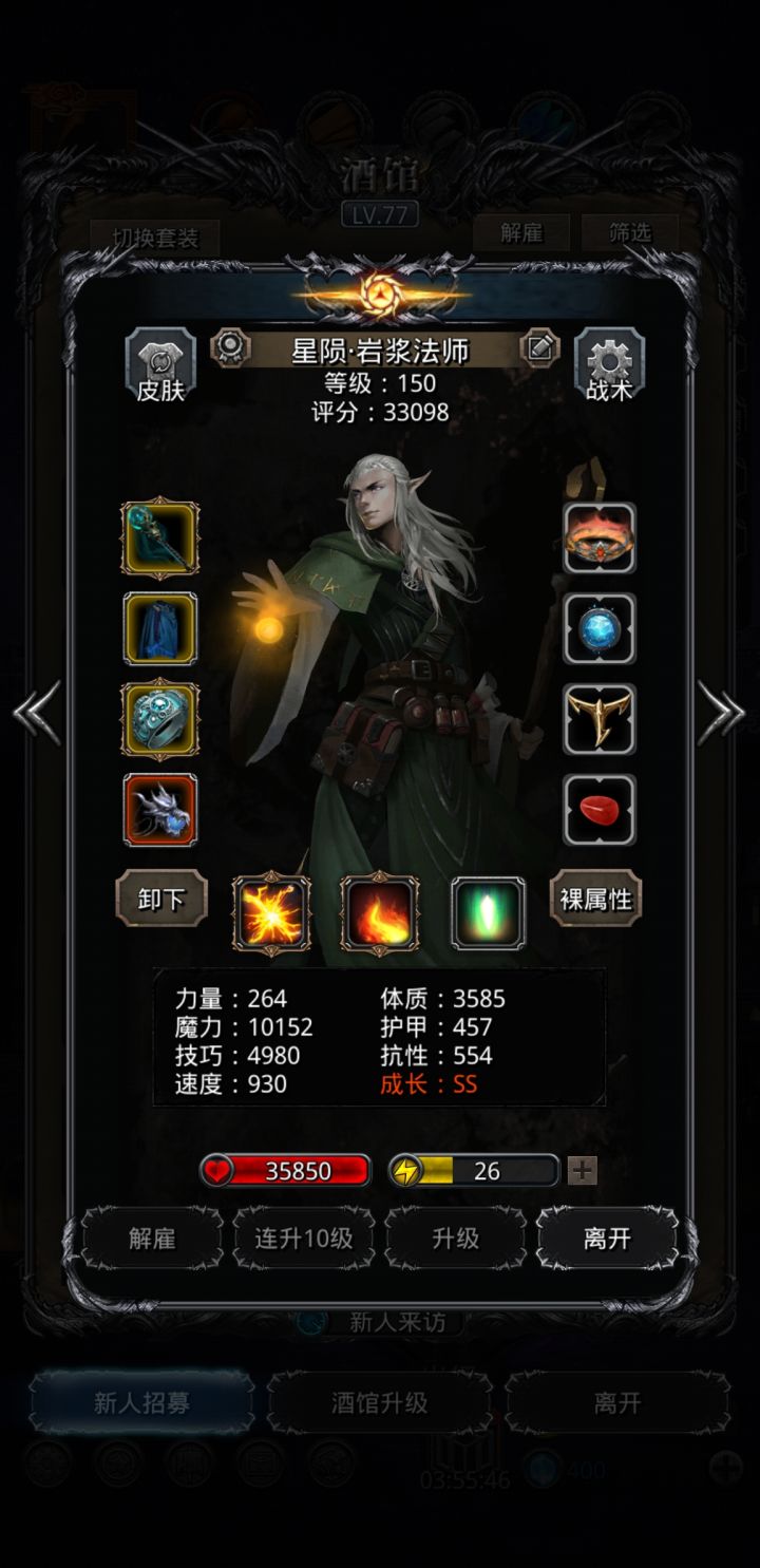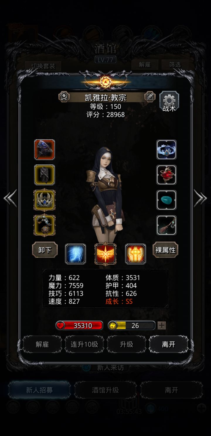 庄园一直没出魔力鞋,参考之前一位大佬无魔力鞋过裂隙39的打法改出一套40%吸血夜魇刮过的打法。配置如图,凑四个抗性衰减免疫,主线给了魔剑士之戒和银狼大衣,自己再刷俩龙晶坠,浩劫非必须,只是用来叠抗性。战术设置法师祭祀始终奶,夜魇只开2,巫医手动轮流奶自己和另外两个奶,夜魇由于有吸血治疗压力很小,偶尔奶一下就行。打小怪开局手动奶一下法师或祭司。